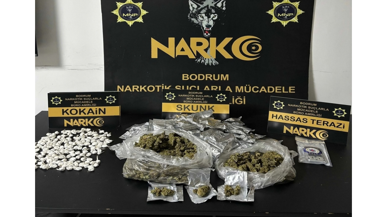 Muğla İl Emniyet Müdürlüğü Narkotik Suçlarla Mücadele Şube Müdürlüğü ekipleri, Bodrum'da uyuşturucu sattığı belirtilen şüphelilere yönelik dün operasyon düzenledi. Ekipler tarafından önceden belirlenen adreslere eş zamanlı baskın yapıldı. 3 şüpheli gözaltına alındı. Şüphelilerin evlerindeki aramalarda; 909 gram skunk, 133 gram kokain, 1 hassas terazi ele geçirildi. İşlemlerinin ardından adliyeye sevk edilen 3 şüpheli, çıkarıldıkları mahkemece tutuklandı.