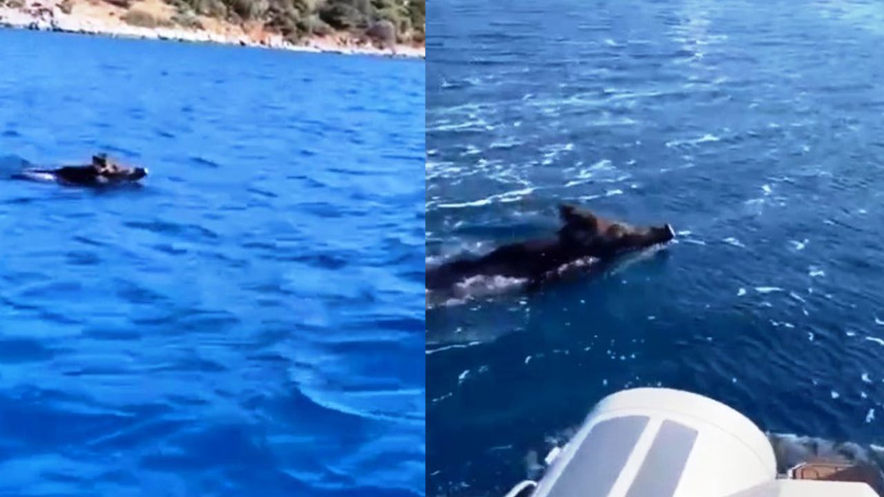 Sosyetenin gözbebeği Türkbükü açıklarında tatilciler tarafından denizde yüzen domuz görenleri hayrete düşürdü. Deniz ortasında büyük bir cisim gören tatilciler cismin yanına gittiklerinde domuz olduğunu fark ettiler. Kıyıdan kıyıya yüzerek geçen domuz daha sonra kıyıya çıkarak gözden kayboldu.