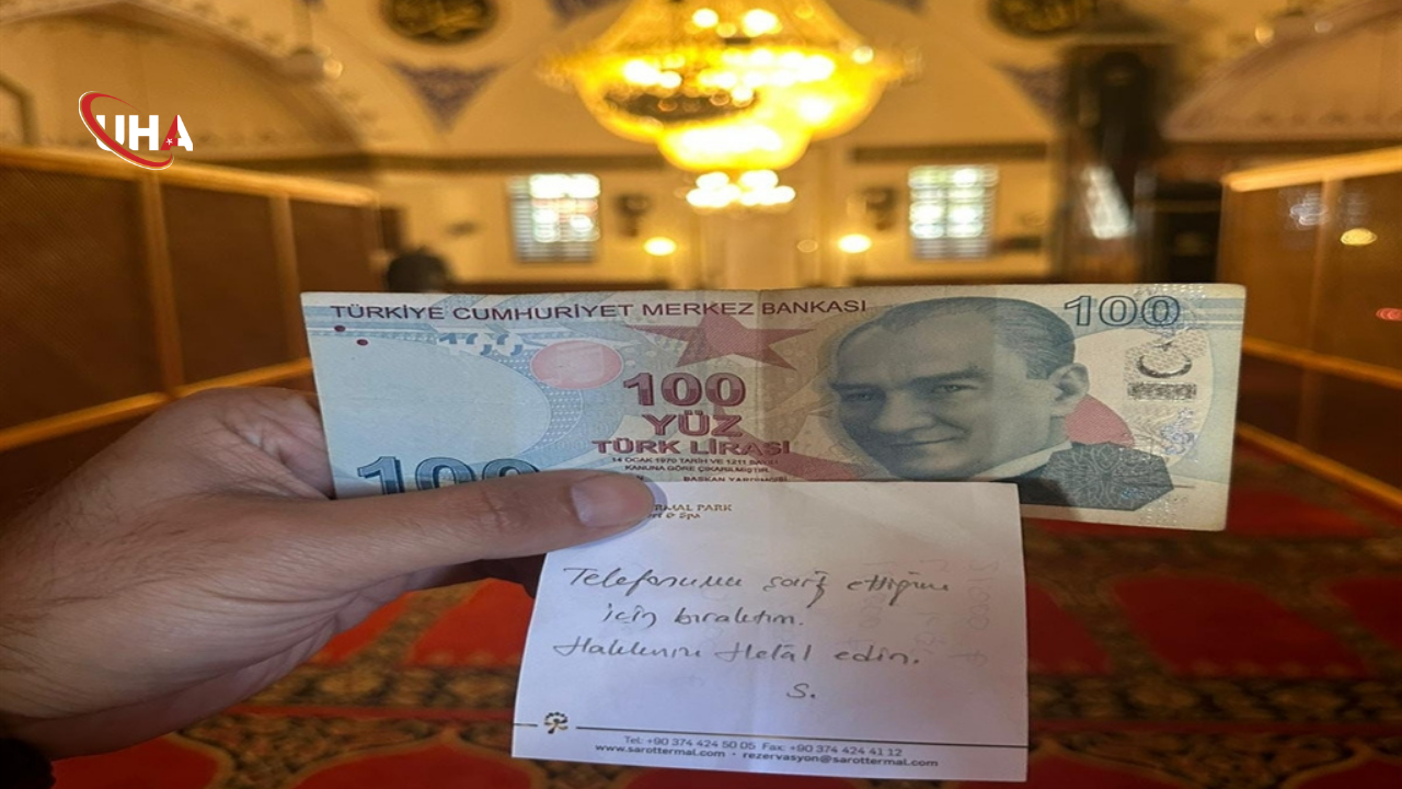 Telefonunu şarj ettikten sonra camiden ayrılan vatandaşın, prizin yanına bir miktar para ve bir not bıraktığı görüldü. Notun üzerine, "Telefonumu şarj ettiğim için bıraktım. Hakkınızı helal edin" yazdığı fark edildi. Vatandaşın bıraktığı 100 TL ve notu, cami müezzini Eyüp Acar buldu.