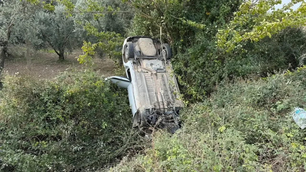 Savrulan araç, yol kenarındaki zeytinliğe uçtu ve takla attı.