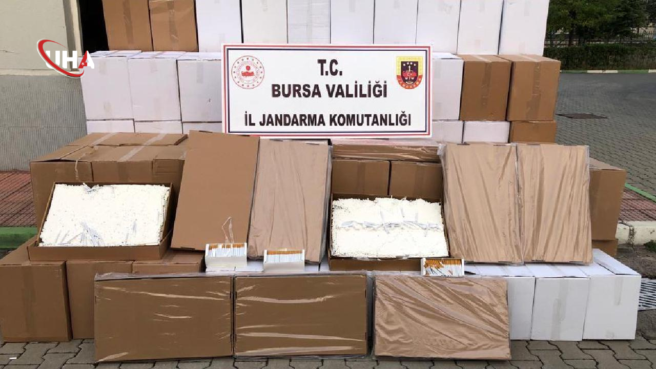 İl Jandarma Komutanlığı’na bağlı Kaçakçılık ve Organize Suçlarla Mücadele Şube Müdürlüğü ekipleri, kaçakçılıkla mücadele kapsamında yürüttükleri çalışmalarda Yıldırım ilçesinde 3 şüpheliye ait iş yeri, depo ve araçlarda arama yaptı. Aramalarda 1 milyon 186 bin 600 bandrolsüz makaron, 920 kilogram açık kıyılmış tütün, 200 bin 800 sigara filtresi, 92 bin 620 doldurulmuş makaron, 19 bin 800 adet şeffaf sigara poşeti, 18 bin 750 adet boş sigara kutusu, 8 bin 780 paket bandrolsüz sigara, 2 bin 700 paket sigara kağıdı ile 20 kilogram nargile tütünü ele geçirildi. Operasyon kapsamında gözaltına alınan 3 şüpheli hakkında adli işlem başlatıldı.