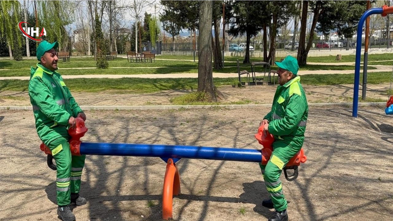 Osmangazi Belediyesi Temizlik İşleri Müdürlüğü’nde görevli Enes Akbulut ile Gülamir Taş (48), görev sahalarındaki Yunuseli Mahallesi'nde çocuk oyun parkını temizledikten sonra mola verdi. Dinlenmek için bank yerine tahterevalliyi tercih eden Akbulut ile Taş, dakikalarca eğlenip, adeta çocukluklarına döndü. Günün iş stresini ve yorgunluğunu çocuk gibi eğlenerek atan işçileri bir mahalle sakini cep telefonuyla görüntüledi. Osmangazi Belediye Başkanı Erkan Aydın, görüntüyü sanal medya hesabından, “Kentimizi güzelleştiren emek sadece çalışmakla değil, yüzlerdeki tebessümle de büyüyor. Temizlik İşleri ekip arkadaşlarımızın bu güzel anı, işlerine kattıkları gönül ve enerjinin en güzel göstergesi. İyi ki varsınız, iyi ki bu kente birlikte değer katıyoruz" mesajını paylaştı.