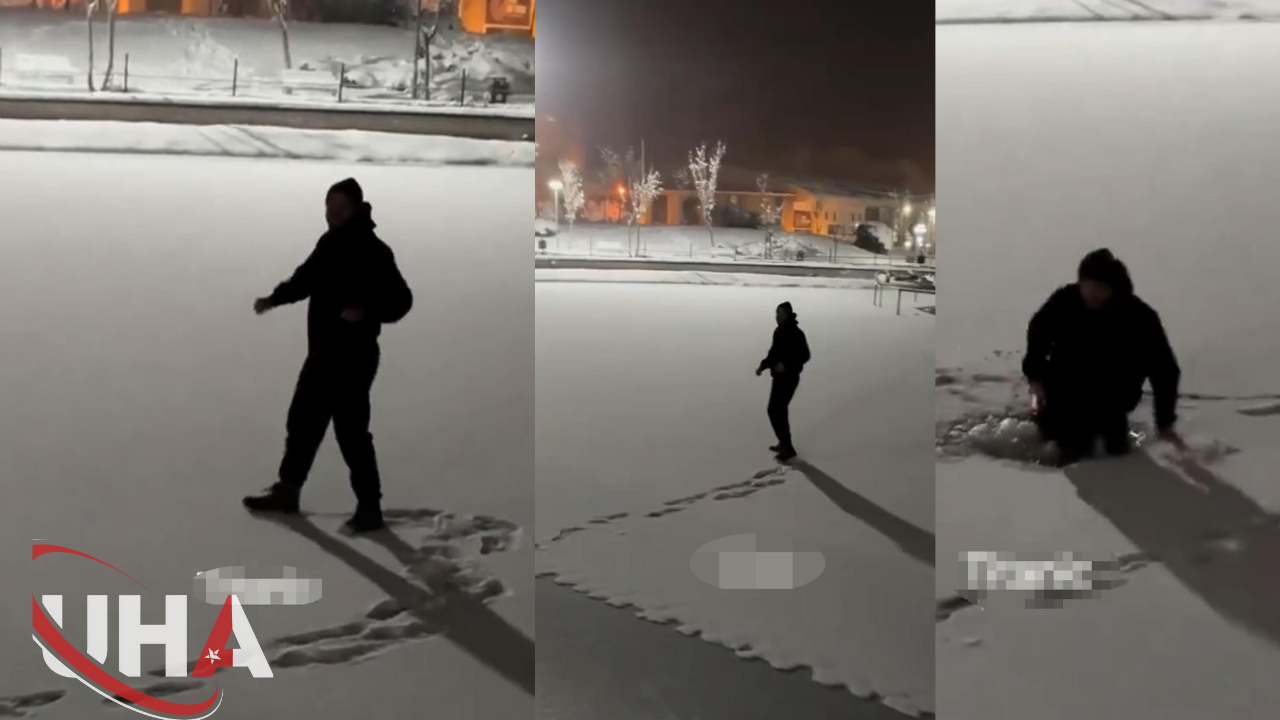 Kar yağışının etkisini kaybetmesinden sonra havaların soğuduğu Muş’ta parklardaki göletlerin yüzeyi buzla kaplandı. Yeşilyurt Mahallesi’nde, yüzeyi donan parkın göletinde yürüyen kişi, bir taraftan da dans etmeye başladı. Bir süre gölette yürüyen kişi, buzun kırılmasıyla suya düştü. Beline kadar suya giren kişinin yaşadıklarını arkadaşı da cep telefonu kamerasıyla görüntüledi.