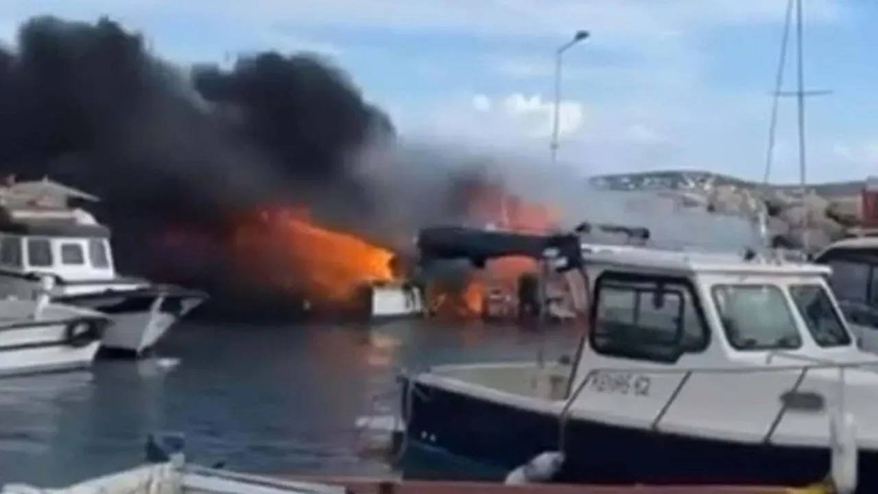 Yıldız Burnu'ndaki balıkçı barınağında bulunan bir teknede, saat 11.30 sıralarında yangın çıktı. Rüzgarın etkisiyle büyüyen yangın, kısa sürede yanındaki 6 tekneye daha sıçradı.