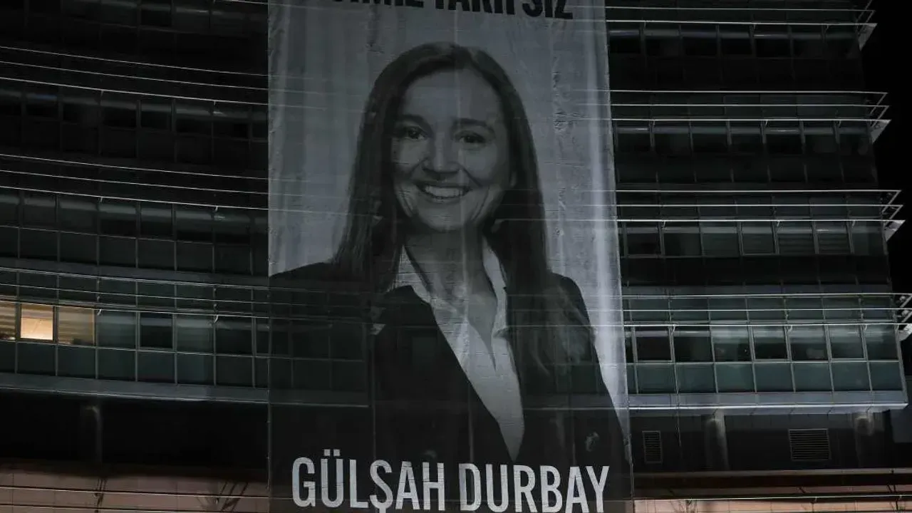 Cumhuriyet Halk Partisi (CHP) Genel Merkezi’ne asılan pankartta, Gülşah Durbay’ın fotoğrafının yanı sıra doğum tarihi ve sonsuzluk işareti yer aldı. Pankartta “Acımız Tarifsiz” ifadeleri kullanıldı.