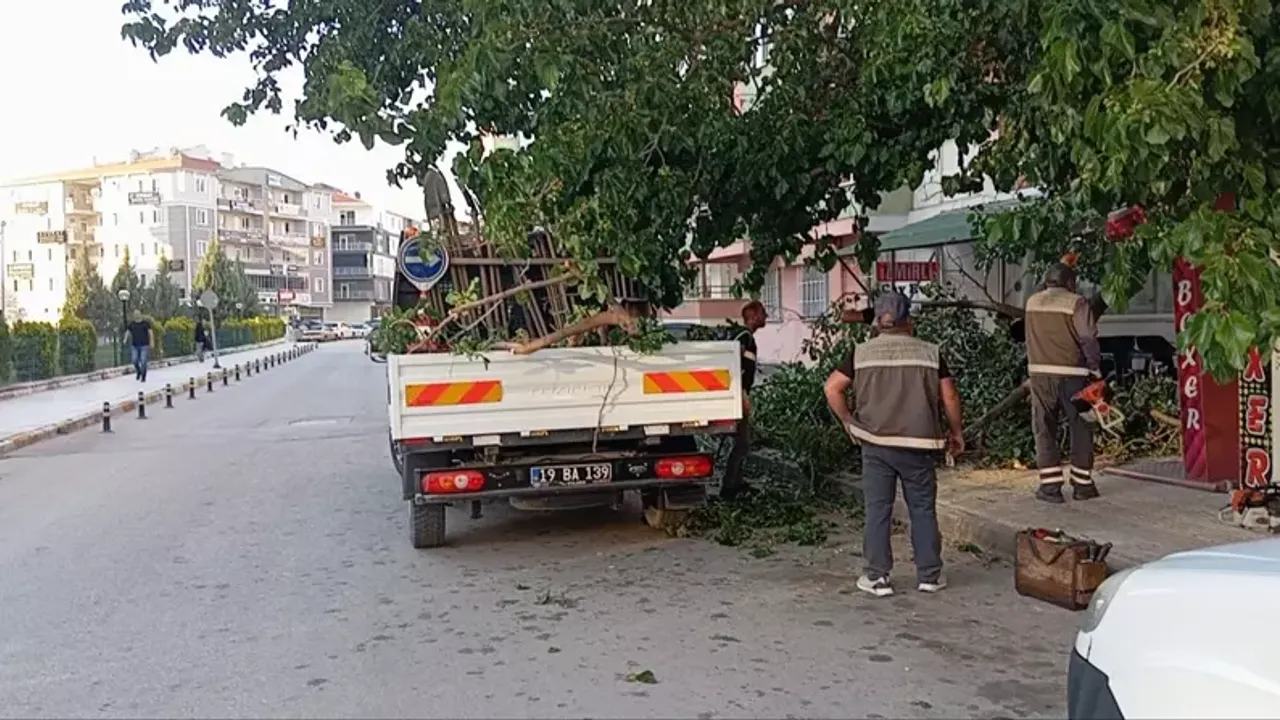 Ağaçtan kopan parçalar, Çorum Belediyesi Park ve Bahçeler Müdürlüğü ekipleri tarafından kesilerek yol üzerinden kaldırıldı.