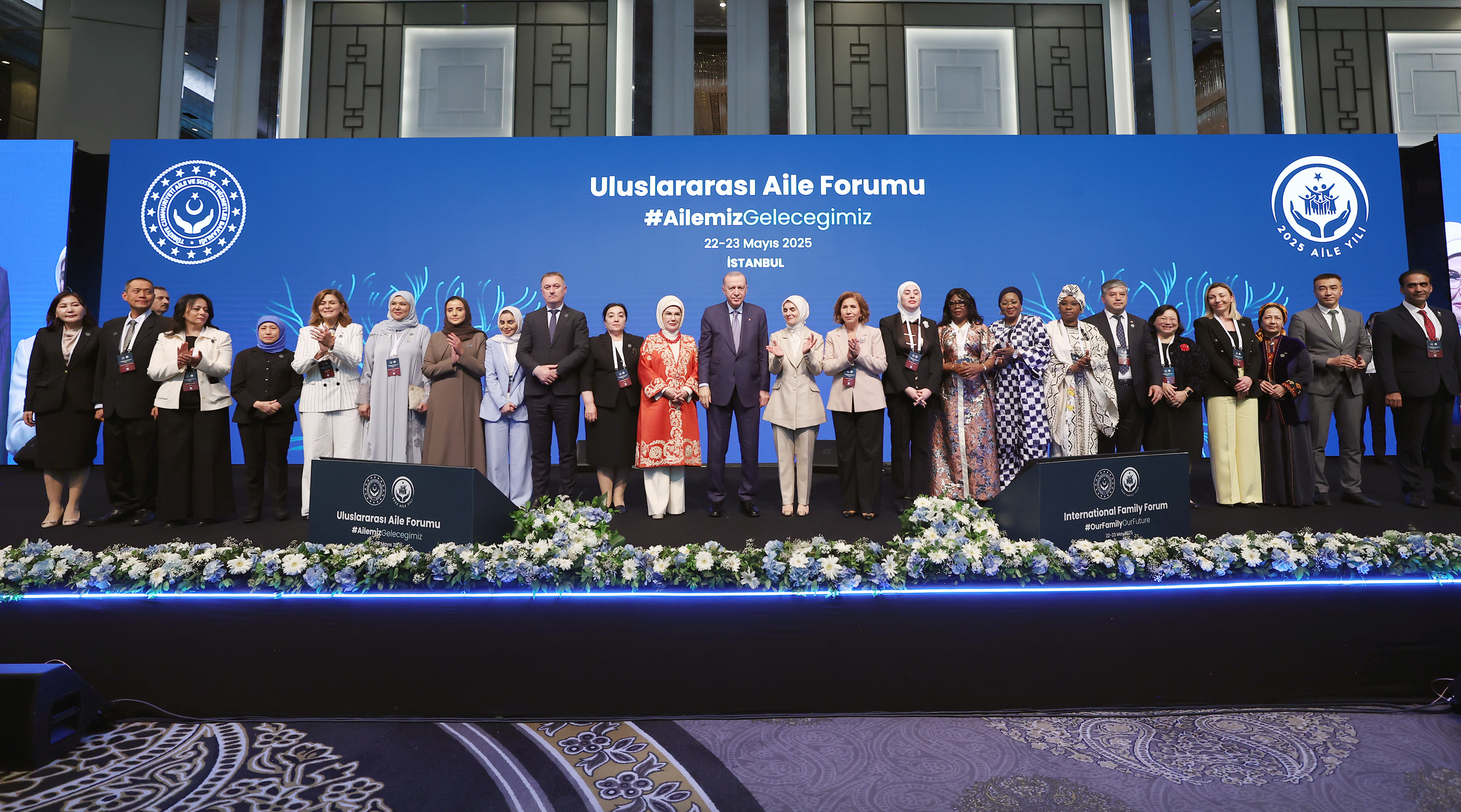 Cumhurbaşkanı Erdoğan, Uluslararası Aile Forumu’nda konuştu. Dijitalleşmeden demografik değişimlere, kültürel dinamiklerden sosyal politikalara kadar pek çok konunun ele alındığı ‘Uluslararası Aile Forumu’nun kapanış programına Cumhurbaşkanı Erdoğan’ın eşi Emine Erdoğan, Aile ve Sosyal Hizmetler Bakanı Mahinur Özdemir Göktaş, Kültür ve Turizm Bakanı Mehmet Nuri Ersoy, Türkiye Büyük Millet Meclisi (TBMM) Başkanı Numan Kurtulmuş, İstanbul Valisi Davut Gül, Demirören Holding Yönetim Kurulu Başkan Yardımcısı Meltem Demirören, 26 ülkenin aileden sorumlu bakanları ve yurt dışından çok sayıda davetli de katıldı.