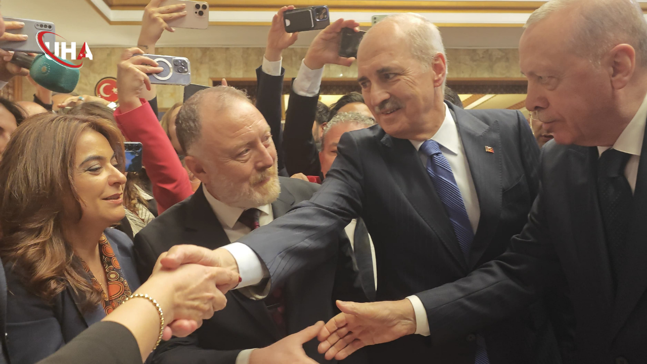 Cumhurbaşkanı Recep Tayyip Erdoğan, TBMM Şeref Holünde düzenlenen 23 Nisan Resepsiyonu'na katıldı. Cumhurbaşkanı Erdoğan’ı, TBMM Başkanı Numan Kurtulmuş, kapıda karşıladı. Erdoğan, resepsiyonda davetlilerle bir süre sohbet edip, fotoğraf çektirdi. Ardından gazetecilerin sorularını yanıtlayan Erdoğan, 'Özgür Özel ile görüşmeyi düşünüyor musunuz?’ sorusuna, "Böyle soru sorulur mu? Şu anda ben iktidar partisiyim, ana muhalefet partisi görüşürüz, görüşmeyiz bir defa bizim kitabımızda yok yok. Tabii görüşürüz, niye görüşmeyelim" cevabını verdi.