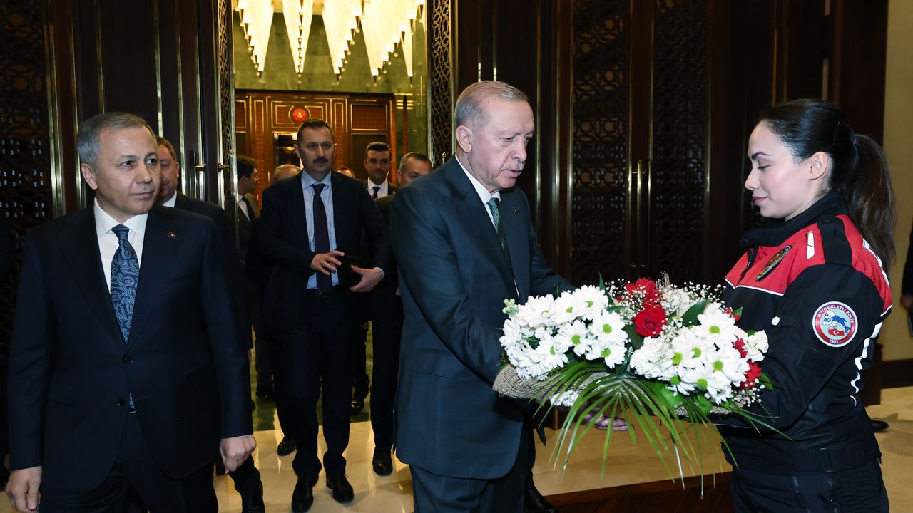 Türk Polis Teşkilatı'nın kuruluşunun 180'inci yıl dönümü ve Polis Haftası dolayısıyla Cumhurbaşkanlığı Külliyesi'nde tören düzenlendi. İçişleri Bakanı Ali Yerlikaya ve beraberindeki Türk Polis Teşkilatı heyetini kabul eden Cumhurbaşkanı Erdoğan, açıklamalarda bulundu. Cumhurbaşkanı Erdoğan, "Bugün sizlerle bir araya gelerek bu anlamlı programı gerçekleştirmek bizleri gerçekten mutlu etmiştir. Polis Teşkilatımızın 180'inci kuruluş yıl dönümünü canı gönülden tebrik ediyorum. Yarından itibaren kutlamaya başlayacağımız Polis Haftası'nın da emniyet teşkilatımız, ülkemiz ve milletimiz için hayırlara vesile olmasını diliyorum. Hafta boyunca yapılacak etkinliklerin aramızdaki birlik ve beraberliği güçlendirmesini temenni ediyorum" dedi.