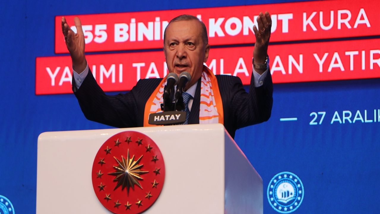 Cumhurbaşkanı Erdoğan, "Şair ne diyor; 'Bir değirmendir cihan, her kimse bekler nevbetin.' Evet. Vaktimizin sınırlı olduğu bu dünyada biz de milletimizin emanetini kutlu bir nöbeti tutar gibi bekleyeceğiz. Siz bize sahip çıktığınız müddetçe, bu milletin başını yere eğdirmeyecek, umutlarını boşa çıkarmayacağız. İşte bugün, dünyada hemen hiçbir ülkenin altından kalkamayacağı büyük bir başarıya, Hatay'ımızda bizzat tanıklık ediyoruz. Depremin vurduğu 11 ilimizde yapımı tamamlanan 455 bininci afet konutumuzu hak sahibi kardeşlerimize teslim etmenin gururunu yaşıyoruz. Bu yuvalarda Allah'a hamdolsun. Şu güzelliklere bakın. Şu binaların güzelliklerine bak. Elhamdülillah, bizler Cumhur İttifakı olarak bu işi başardık. Bu yuvalarda yepyeni bir hayatın sayfasını açacak tüm vatandaşlarımıza hayırlı, uğurlu olsun diyor, hanelerine kavuşan her bir kardeşime sağlıklı, mutlu, bereketli ömürler diliyorum. Rabb'im bu evlerde inşallah ağız tadıyla oturmayı nasip eylesin. Biliyorsunuz; yıl sonuna kadar 453 bin bağımsız bölümün anahtarını depremzede kardeşlerimize teslim edeceğimizi söylemiştik. Bugün itibarıyla bu rakamın da üzerine çıkarak hamdolsun, tam 455 bin 357 bağımsız bölümü tamamlamış bulunuyoruz. Yeni konut ve iş yerlerimizin bir kez daha hayırlara vesile olmasını temenni ediyorum. Emeği geçenleri kutluyor, gece gündüz demeden 7 gün 24 saat çalışan tüm kardeşlerimi tebrik ediyorum. Sizlerin gözündeki şu sevinci görmemize vesile olan, başta Murat Kurum kardeşimi, mimarlarımızı, mühendislerimizi, işçi kardeşlerimi, yüklenici firmalarımızı aynı şekilde canıgönülden tebrik ediyor, hepsine ülkem ve milletim adına teşekkür ediyorum" dedi.