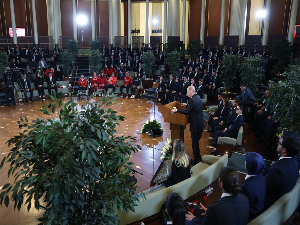 Farklı branşlarda başarıdan başarıya koşan millî sporcuların yanı sıra bilimde, sanatta, sivil toplumda ve teknolojide önemli başarıları imza atan Türkiye temsilcisi gençler ile beraber olduğunu belirten Erdoğan, “Evvela elde ettiğiniz başarılardan ötürü sizleri can‑ı gönülden tebrik ediyor, başarılarınızın inşallah daim olmasını diliyorum. Ülkemize yaşattığınız sevinçler için hepinize ayrı ayrı teşekkür ediyorum. Sizleri yetiştiren anne‑babalarınıza, hoca ve eğitmenlerinize buradan ayrıca şükranlarımı iletiyorum; hepsine sağlıklı ve huzurlu ömürler diliyorum. Siz kıymetli arkadaşlarımın nezdinde, yarınlarımızın mimarı, geleceğimizin teminatı, Türkiye Yüzyılı’nın mihmandarı olan tüm gençlerimizle gurur duyduğumuzu özellikle ifade etmek istiyorum” dedi.