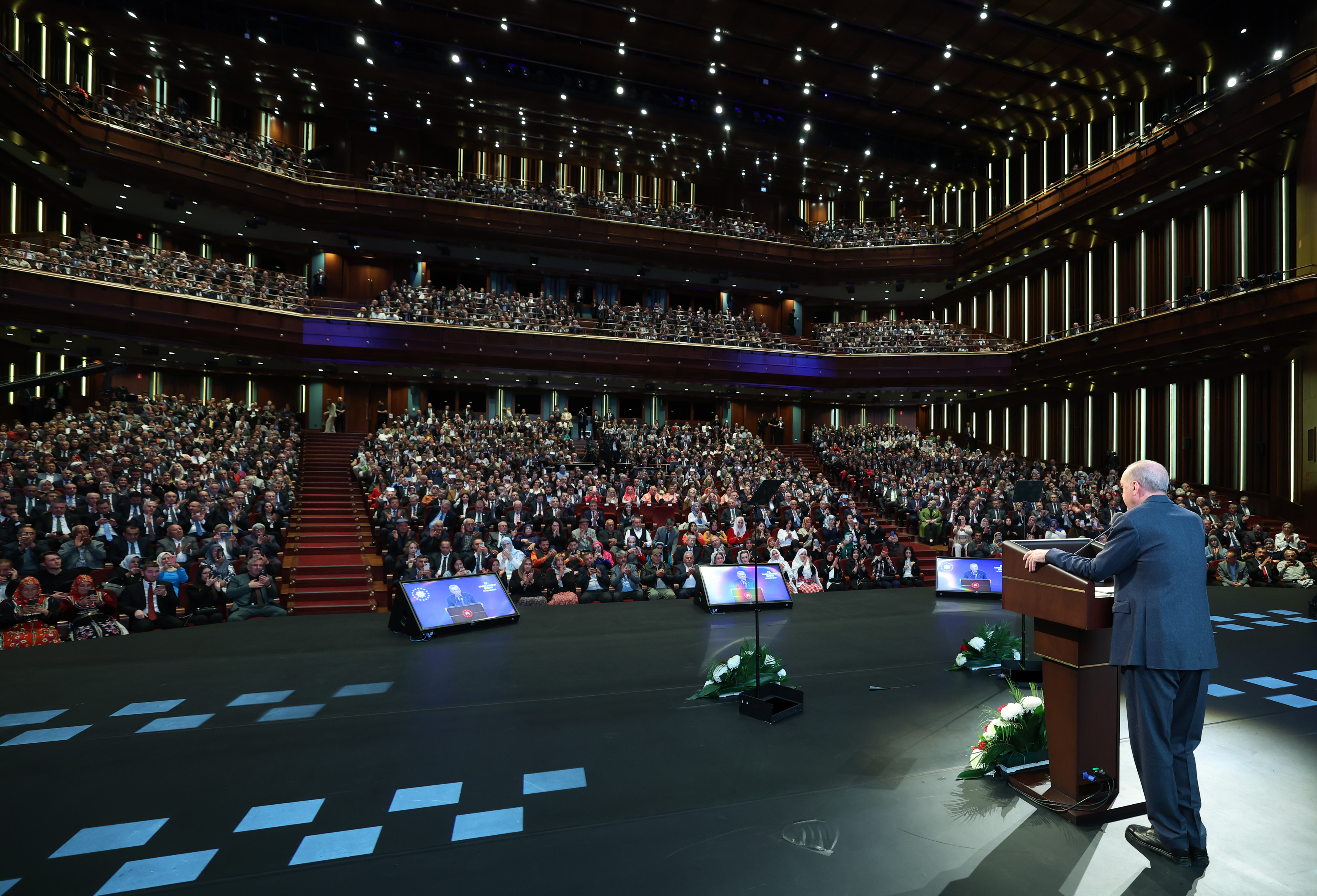 Erdoğan, yeni bir dönemin başladığını da belirterek, "Terör sebebiyle 40 yıldır ülkemize kullandırılmayan kaynakları, harekete geçirmeye zaten başlamıştık. Petrol başta olmak üzere, tüm madenlerimizi süratle milletimizin emrine amade kılacağız. Tekstilden makineye, sanayinin tüm alanlarında yeni tesislerin inşasını teşvik edecek, destek vereceğiz. Tarihi ve tabii güzellikleriyle eşsiz hazinelere sahip bölgemizi, turizmin en gözde destinasyonu haline getireceğiz. Güneydoğumuzun mümbit topraklarını, sulamadan tohuma her alanda verimli tarım projeleriyle buluşturup, gıda sektöründeki küresel liderliğimizi pekiştireceğiz. Bilhassa gençlerimizi ve kadınlarımızı sosyal ve ekonomik gelişmemizin öncü aktörleri haline getireceğiz. Velhasıl, sadece güvenlik ve huzur bakımından değil, turizmden kültüre, yatırımlardan sosyal barışa kadar pek çok konuda yeni bir dönem bizi bekliyor. Tüm bunları hayata geçirmek için gereken planlamalara, çalışmalara, hazırlıklara şimdiden başladık. İnşallah bu tarihi fırsat, küçük hesaplar veya uluslararası ayak oyunlarıyla heba edilmeden, samimi bir iklimde tekemmül eder. Biz, 'Terörsüz Türkiye' menziline varılması için kararlı, sabırlı, iyi niyetli ve yapıcı bir anlayışla hareket etmeye devam edeceğiz. Bulunduğumuz makamın omuzlarımıza yüklediği sorumluluğun gereğini layıkıyla yapacak; 86 milyonun tamamına güven veren duruşumuzu son raddeye kadar koruyacağız. Örgütün 'fesih ve silah bırakma' kararı sonrasında, vatandaşlarımızın sevincini paylaşmak yerine ekranlarda karalar bağlayanları geride bırakıp istikbale hep birlikte yürüyeceğiz. 40 yıl boyunca ödenen ağır bedeller ortadayken, 'örgütün silah bırakmasından bana ne?' diyen tuzu kurulara ise sadece acıyarak bakıyoruz; onlara da Allah’tan basiret ve feraset diliyoruz" diye konuştu.