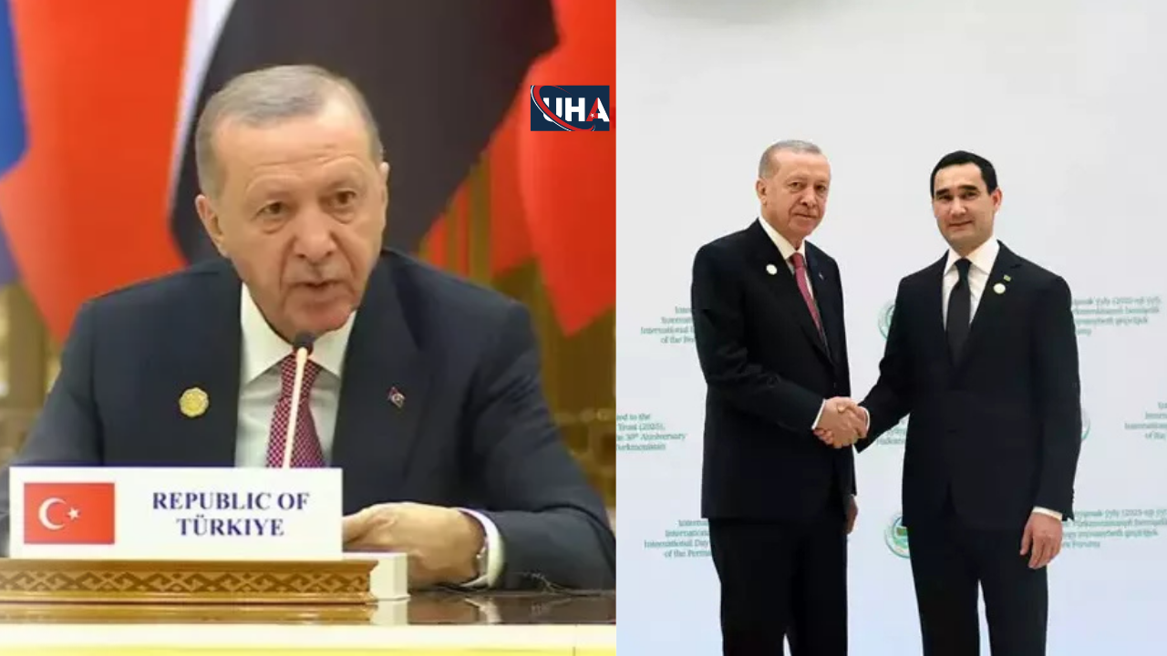 Forumu Türkiye'nin de ortak sunucusu olduğu, Birleşmiş Milletler 2025 Uluslararası Barış ve Güven Yılı bağlamında çok anlamlı bulduğunu belirten Erdoğan, “Bağımsızlığından bu yana büyük bir iktisadi ve beşeri kalkınmayı gerçekleştiren Türkmenistan'ın her başarısıyla övünüyor, seviniyoruz. Türkmenistan bugün dünyanın en hızlı büyüyen ekonomilerinden biri konumuna erişmiş şehirleriyle, fabrikalarıyla, okulları ve hastaneleriyle örnek, modern bir ülke haline gelmiştir. Türkiye ile Türkmenistan, gücünü ortak tarihten alan müstesna bağlarla birbirlerine sıkı sıkıya kenetlenmiş iki kardeş ülkedir. Türk ve Türkmen halkları aynı kökten gelen aynı ruhu ve inancı taşıyan iki kardeş millettir.