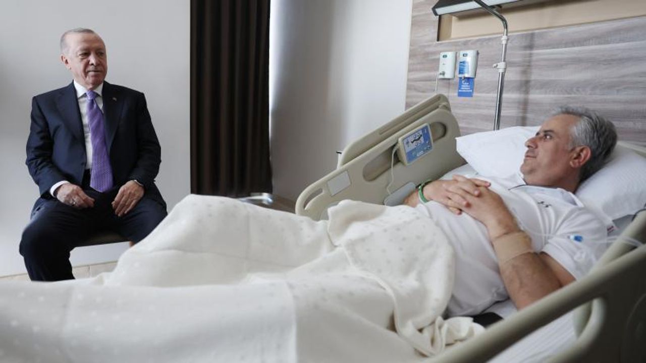Yalçın'ı hastane odasında ziyaret ederek "geçmiş olsun" temennisinde bulunan Erdoğan, doktorlardan sağlık durumuna ilişkin bilgi aldı.