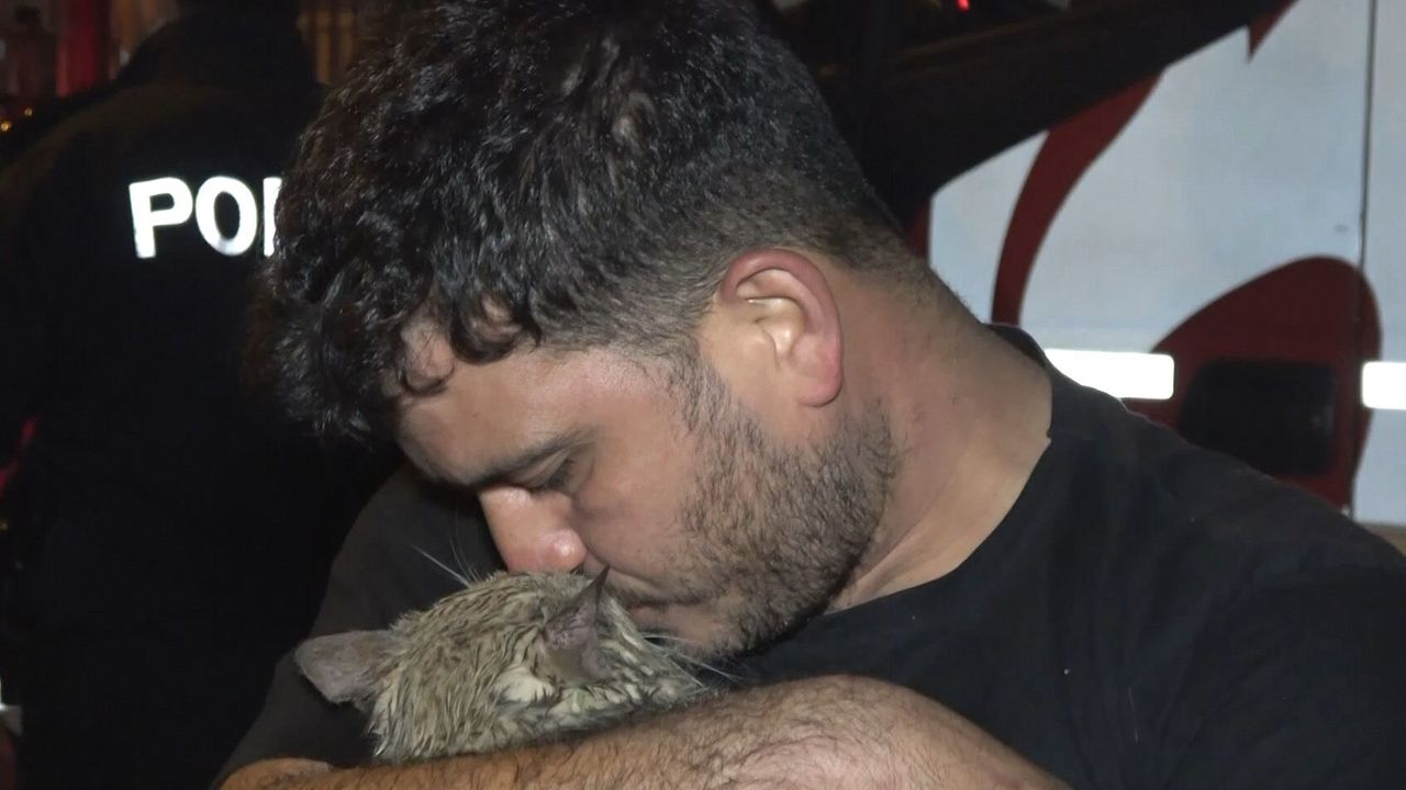 Yangın sırasında isminin 'Duman' olduğu öğrenilen kedi itfaiye ekipleri tarafından fark edilerek evden çıkarıldı. Dumandan etkilenmemesi için ekipler tarafından güvenli alana alınan kediye mahalleli sahip çıktı. Kedi, tedavisi yapılmak üzere veterinere götürüldü.