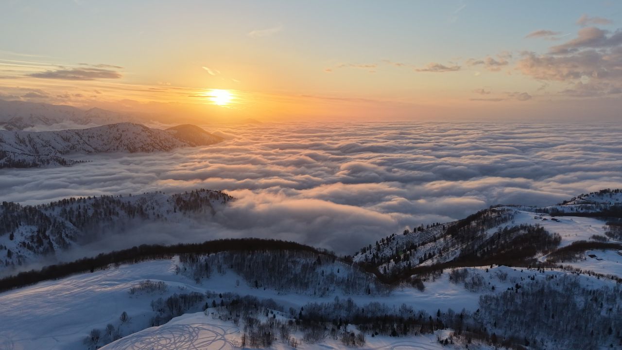 Kar kalınlığının 2 metreyi aştığı Handüzü Yaylası’nda hava sıcaklığının yükselmesiyle vadilerde oluşan bulut, seyrine doyumsuz bir manzara sunuyor. Bölgeye gelen ziyaretçiler, bir yandan şampiyonanın heyecanına ortak olurken diğer yandan da eşsiz manzaranın keyfini sürüyor. Ziyaretçilere görsel şölen sunan bulutların karlı kaplı doğayla görüntüsü dronla görüntülendi.