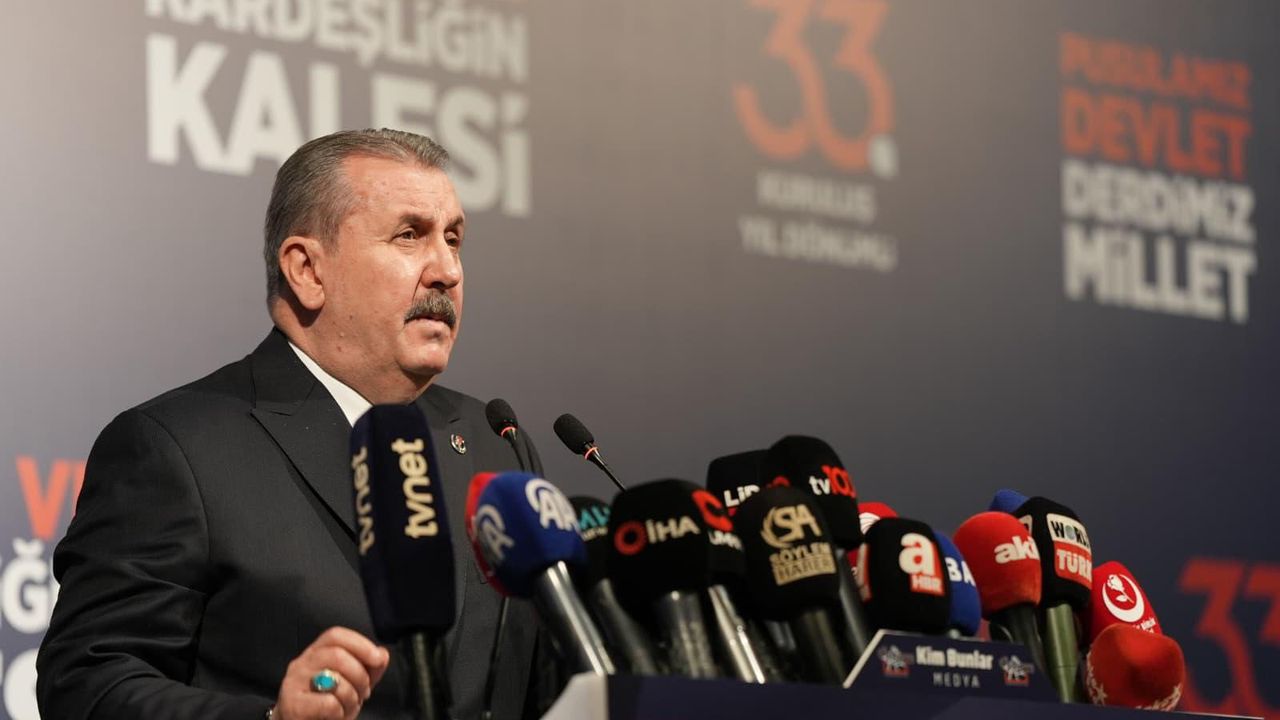 Destici, sözlerine şöyle devam etti; “Türk Milleti, tüm köken, inanç ve düşünce farklılıklarıyla birlikte bir bütündür ve kardeştir. Hepimiz bir milletiz; o milletin ortak adı da büyük Türk Milletidir. Birliğin ve kardeşliğin muhafazası için mücadele edeceğiz, birliğimizi ve kardeşliğimizi koruyacağız. Kimsenin bozmasına müsaade etmeyeceğiz. Terör örgütünün kurdurduğu sözde partilerin temsilcileri, katıldıkları toplantılarda, her dönemde ve buldukları her fırsatta İstiklal Marşımıza saygısızlık yaptılar. TBMM kürsüsünden defalarca milletimize, devletimize, tarihimize, inançlarımıza ve değerlerimize hakaret ettiler. Hiçbir devlet, varlığını, birliğini, bütünlüğünü hedef alan terör örgütlerine bu ölçüde bir müsamahayla davranmaz, davranamaz. Devletler suçla, suç örgütleriyle, ihanetle, hainlerle müzakere etmez, mücadele eder; suçluları yakalar ve etkisiz hale getirir, yoksa devlet var olmaz. Milletimize, devletimize, vatanımıza düşmanlık edenler, hiç tereddüt etmeden ve milletimizde hiçbir şüpheye yer bırakılmadan, hak ettikleri muameleyi mutlaka görmelidirler. Başka millete, başka devlete, başka bayrağa bağlı olanların tümünün, eğitim, sağlık, çalışma, mülk edinme başta olmak üzere, vatandaşlık haklarından faydalanmaları engellenmelidir. Başka millete, başka devlete, başka bayrağa bağlı olanların tümü, nereye bağlılarsa oraya deport edilmelidir. Dünya var olduğu sürece biiznillah bu asil Müslüman Türk Milleti var olacaktır. Dünya üzerinde Türk Milletinin tek bir ferdi yaşadığı sürece Allah’ın inayetiyle al yıldızlı al bayrağımız yere düşmeyecektir. Çünkü bu bayrak 10 asırdan fazla bir süre İlay-ı Kelimetullah yolunda İslam’a ve Müslümanlara gölge olmuş ve sancaktarlık yapmıştır. Kendi tarihiniz olmadığı için Türk’ün tarihini yağmalamaya çalışıyorsunuz. Kendi kültürünüz olmadığı için Türk’ün efsanelerine çöküyorsunuz. Buna da hiç utanmadan çekinmeden öz gardaşımız olan Müslüman Kürt kardeşlerimizi alet etmeye çalışıyorsunuz. Ama Kürt kardeşlerimizde bunların gerçek yüzünü gördü. Bunlar asla Kürtlerin temsilcisi değil. Buradan, Büyük Birliğin 33’üncü yılında bu hainlerin yüzüne bir kez daha haykırıyorum. Siz sadece bebek katili değilsiniz. Siz sadece vatan haini değilsiniz. Siz hem terörist hem de hırsızsınız. Tarih hırsızısınız, kültür hırsızısınız. Ama yağma yok. Alperenler burada. Canımızı veririz, kanımızı veririz ama ne bir çakıl taşımızı ne de bir tel saçımızın hatırasını size çiğnetmeyiz. O kirli ellerinizi tarihimizin üzerinden çekin.”