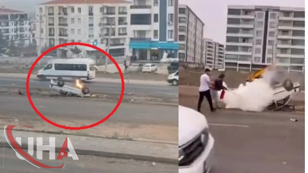 Kaza, dün akşam saatlerinde Yenişehir ilçesi Dönümlü Mahallesi Şeyh Said Bulvarı’nda meydana geldi. Sürücüsünün ismi ve plakası öğrenilemeyen otomobil, kontrolden çıkarak takla attı. Ters dönen otomobil alev alarak yanmaya başladı. Çevredekiler alevlere yangın tüpüyle müdahale etti. Yangın söndürülürken, otomobildeki sürücü yaralandı ve ihbarla olay yerine gelen sağlık ekiplerinin ilk müdahalesinin ardından hastaneye kaldırıldı. Kaza anı ise güvenlik kamerasına yansıdı.