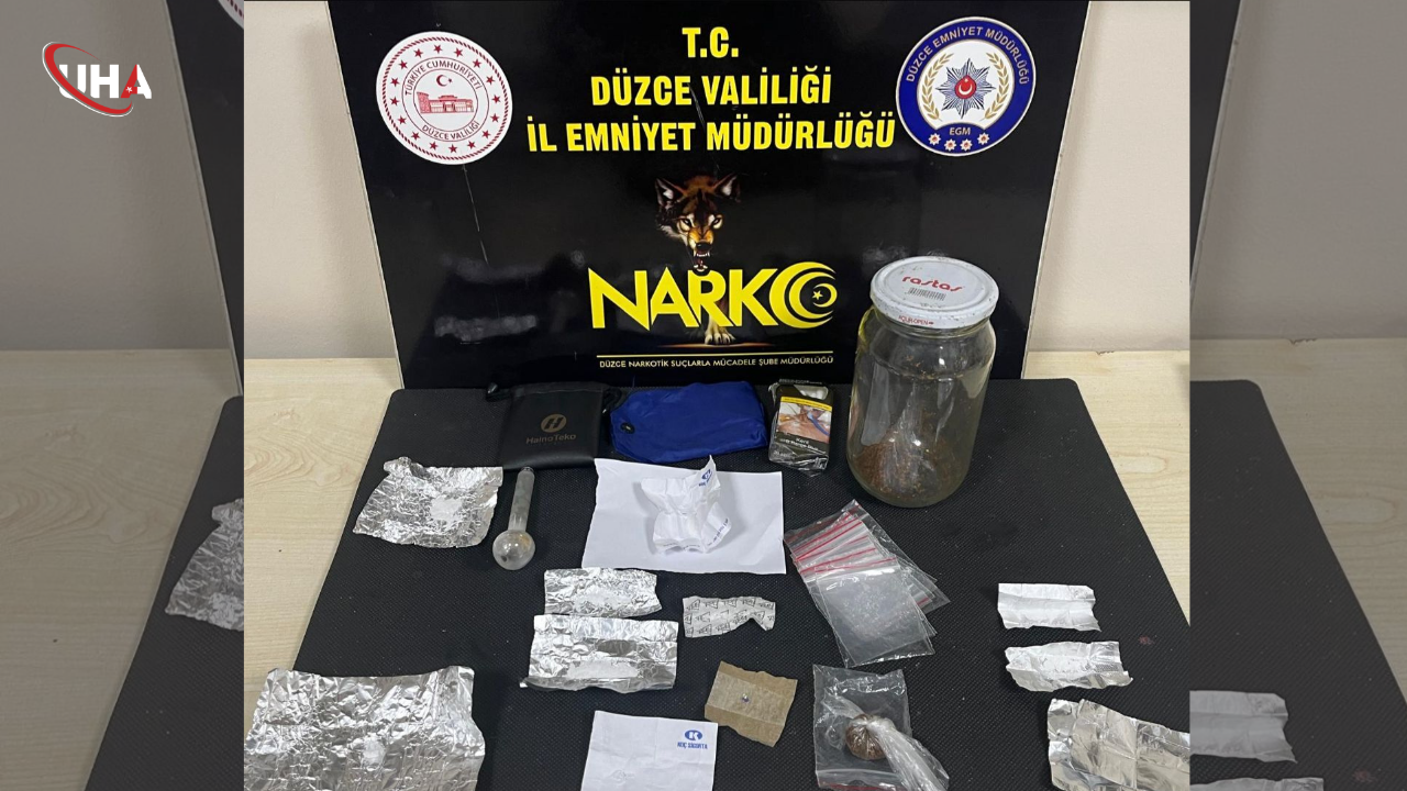Düzce Emniyet Müdürlüğü Narkotik Suçlarla Mücadele Şube Müdürlüğü ekipleri tarafından Orhangazi mahallesinde yasaklı madde ticareti yaptığı tespit edilen şüphelilerin evine operasyon düzenlendi. Polis ekipleri tarafından evde yapılan aramada, 8 parça halinde 50 gram metamfetamin maddesi, 3 parça halinde 6 gram sentetik kannobinoid maddesi ile yasaklı madde kullanım aparatı ele geçirildi.