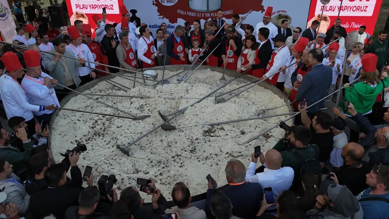 Türkiye'nin pirinç üretiminin yaklaşık yüzde 60'ının yetiştirildiği Edirne'de hasat edilen 6 ton pirinç, Türkiye'nin en büyük tenceresinde pişirildi.