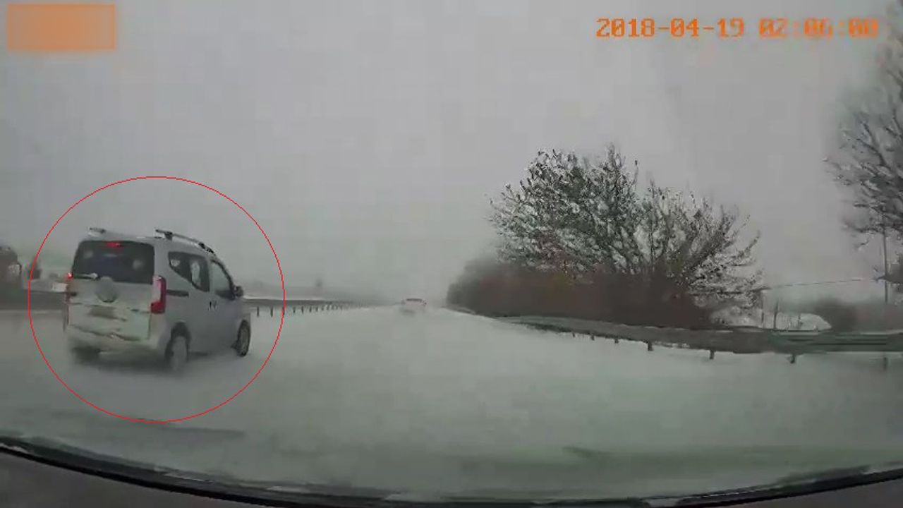 Kontrolden çıkarak savrulan araç, şans eseri yoldan geçen diğer araçlarla çarpışmayarak, bariyerlere sürtüp, durdu. Savrulma anları, arkadan gelen başka bir aracın yol kamerasına yansıdı. Kamera kaydında, arkadan gelen sürücülerin ani fren ve manevra yaparak çarpışmayı son anda önlediği görüldü.