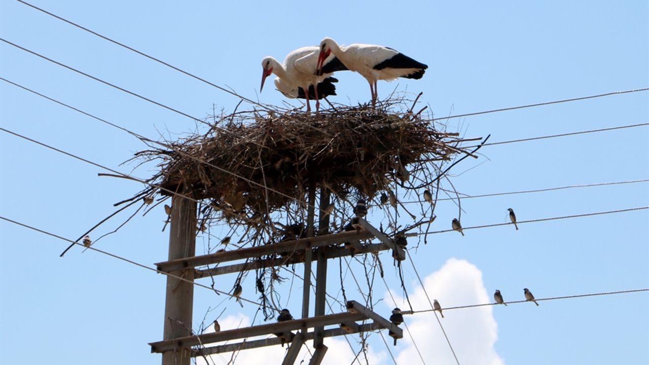 Her yıl aralıksız aynı direğe yuva yapan leylekler, bu yıl da geldi. İki leylek, direğin üzerine yuvalarını kurdu. Köylüler, rahatsız etmemeye özen gösterdikleri leylekleri, 'baharın müjdecisi' olarak nitelendiriyor.