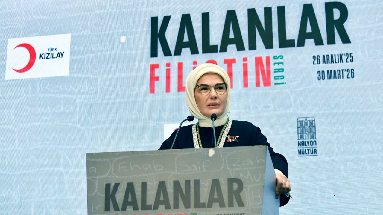 Cumhurbaşkanı Recep Tayyip Erdoğan'ın eşi Emine Erdoğan, Kalyon Vakfı ve Türk Kızılayı'nın işbirliğinde, Gazze'de yıkımın içinden doğan vakur direnişi sanatın diliyle görünür kılma amacıyla Şişli Nişantaşı'ndaki Kalyon Kültür'ün bulunduğu tarihi Taş Konak'ta düzenlenen 'Kalanlar' Filistin Sergisi'nin açılış törenine katıldı.Törene Emine Erdoğan'ın yanı sıra, Filistin'in Ankara Büyükelçisi Nasri Abu Jaish, Türk Kızılay Genel Başkanı Prof. Dr. Fatma Meriç Yılmaz, Kalyon Holding Yönetim Kurulu Başkanı Cemal Kalyoncu, Limak Holding Yönetim Kurulu Başkanı Nihat Özdemir, Demirören Holding Yönetim Kurulu Başkanı Yıldırım Demirören ve eşi Revna Demirören, Demirören Holding Yönetim Kurulu Başkan Yardımcısı Meltem Demirören, Kalyon Holding Yönetim Kurulu Başkan Vekili Lütfi Elvanile, Kalyon Holding'in Yönetim Kurulu üyeleri Haluk Kalyoncu, Mehmet Kalyoncu, Kübra Kalyoncu ile Murathan Kalyoncu da katılım sağladı.Erdoğan, hayra dokunan kıymetli bir sergiyi hayata geçirdikleri ve ev sahipliği yaptıkları için Kalyon Vakfı'na teşekkür etti. Sergide Filistin'de yaşananlara dikkati çekmek için Filistin çorbası, Filistin simidi, zeytin ile hurma ikram edildi. Program, konuşmaların ardından gerçekleşen fotoğraf çekimiyle sona erdi. Kalyon Kültür'de 6 farklı odada 6 farklı enstalasyon ve bir deneyim alanından oluşan sergi 30 Mart'a kadar devam edecek.