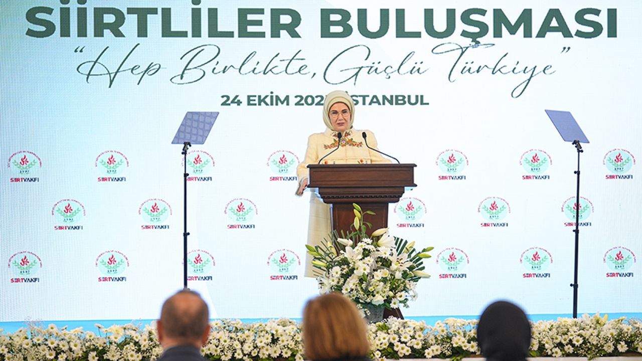 Anadolu'nun hazinelerini gün yüzüne çıkarmak için çeşitli projeler yürüttüklerine dikkati çeken Emine Erdoğan, "Siirt, başlı başına yaşayan bir kültür mirasıdır. O yüzden bize düşen, bu mirası layıkıyla ele almaktır. Mesela bugün yerel mutfaklar kültürlerin vitrini haline geldi. Siirt'in de hatırı sayılır bir gastronomik birikimi, sayısız coğrafi işaretli ürünü var. Hatta bazı yemeklerimiz, hem ülkemizde hem de dünyada biliniyor. Büryan, perde pilavı, kitel, cokat, bunlardan sadece birkaçı. Ancak bu listeye ekleyebileceğimiz daha birçok gastronomi unsurumuz mevcut. Bunların her birini gastro turizm motivasyonu haline getirebiliriz." dedi.