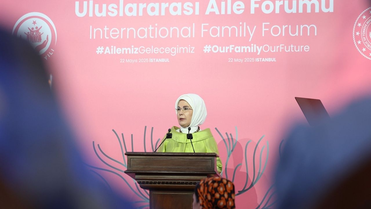 Emine Erdoğan, sofra başında toplanmaktan, birlikte kaliteli zaman geçirmekten ve akraba ziyaretlerinden geri durulmaması gerektiğini kaydederek, "Evlenme yaşını ileri atan bahanelere ve felaket kehanetleriyle doğum sayılarının geriletilmesine geçit vermemeliyiz. Yaşlı ve yalnızlaştırılmış bir dünya insanlığın kaderi olmamalıdır. El ele vererek güçlü ve müşterek bir söylemle, aileyi dünyada yeniden hak ettiği saygın konuma yükseltebiliriz. Aile hususunda sizlerle gönül birliğimiz olduğunu biliyor, iş birliğine de açık olduğumuzu belirtmek istiyorum" değerlendirmesinde bulundu.