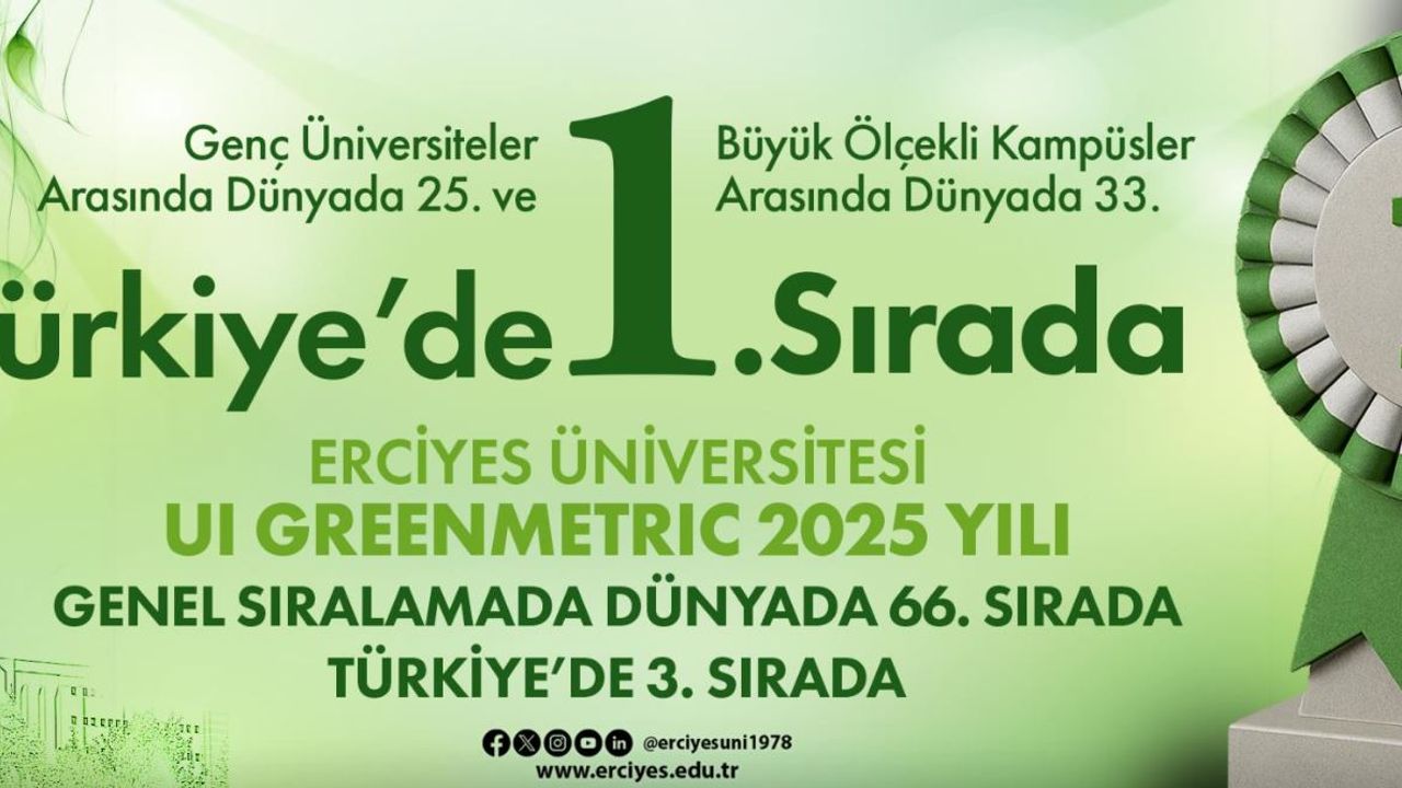 Çevresel duyarlılık, enerji ve iklim değişikliği yönetimi, atık politikaları, ulaşım planlaması ve genel sürdürülebilirlik uygulamaları gibi kapsamlı ölçütlerle yapılan değerlendirme sonucunda ERÜ, ‘Genç Üniversiteler ve Büyük Ölçekli Kampüsler’ kategorilerinde Türkiye’de 1’inci olurken, dünyanın en çevreci üniversiteleri arasında ise 66’ncı sırada yer alarak önemli bir uluslararası başarıya imza attı. Dünya genelinde bin 745 üniversitenin değerlendirildiği uluslararası sıralamada Erciyes Üniversitesi, geçen yıla göre 14 basamak yükselerek, dünyada 66’ncı sıraya yerleşti ve uluslararası alanda dikkat çekici bir başarı ortaya koydu. Ayrıca, Türkiye’de sıralamaya dahil edilen 142 üniversite arasında 3’üncü sırada yer alarak ulusal ölçekte de öne çıkan bir başarı elde etti. Sıralama sisteminin, kampüs büyüklüğüne göre yaptığı değerlendirmede ERÜ, dünyada 32’nci sırada ve Türkiye Üniversiteleri arasında ise 1’inci sırada yer aldı. ERÜ, sıralama sistemi tarafından oluşturulan ve 50 yaşın altındaki üniversitelerin değerlendirildiği ‘İlk 50 Genç Üniversite’ listesine de girerek önemli bir başarı daha kaydetti. Erciyes Üniversitesi bu alanda da dünyada 25’inci sırada yer alırken Türkiye Üniversiteleri arasında ise 1’inci sırada kendine yer buldu. Sıralamalardaki bu önemli başarıların yanı sıra, ERÜ puan bazında da dikkate değer bir yükseliş göstererek, UI GreenMetric 2025 değerlendirmesinde toplam puanını 8 bin 585’ten 8 bin 775’e çıkarılarak genel performansını belirgin şekilde güçlendirdi. Yapı ve Altyapı kategorisinde bin 350’den bin 400’e, Enerji ve İklim Değişikliği kategorisinde bin 735’ten bin 800’e, Atık kategorisinde bin 425’ten bin 450’ye, Su kategorisinde 800’den 837,5’e ve Ulaşım kategorisinde bin 600’den bin 625’e yükselen puanlar; üniversitenin çevre odaklı uygulamalarda sistemli, kararlı ve çok yönlü gelişimini açıkça ortaya koydu.