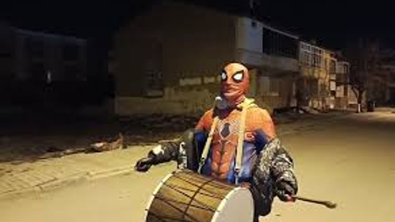 Erzincan'da sıra dışı bir sahur yaşandı. Örümcek Adam davul çalıp vatandaşları uyandırdı.