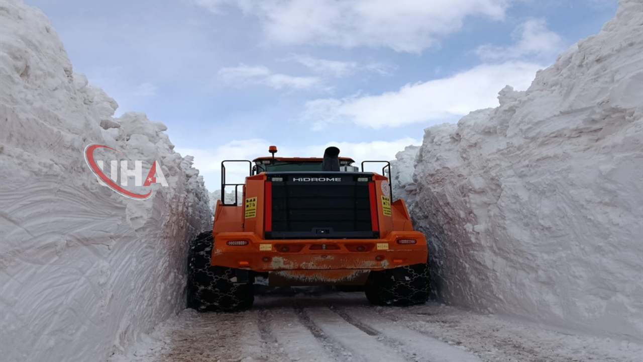 Yoğun kar yağışı ve tipi nedeniyle bir süredir ulaşıma kapalı olan ve kar kalınlığının yer yer 4 metrenin üzerine çıktığı kara yolunda ekipler, iş makineleriyle yolu açmak için çalışıyor. Kar kalınlığının iş makinesinin boyunu aştığı bölgede iş makineleri kar kütlelerini güçlükle temizliyor. Karayolları ekipleri, ulaşımın yeniden başlaması için kar temizliğini sürdürüyor.