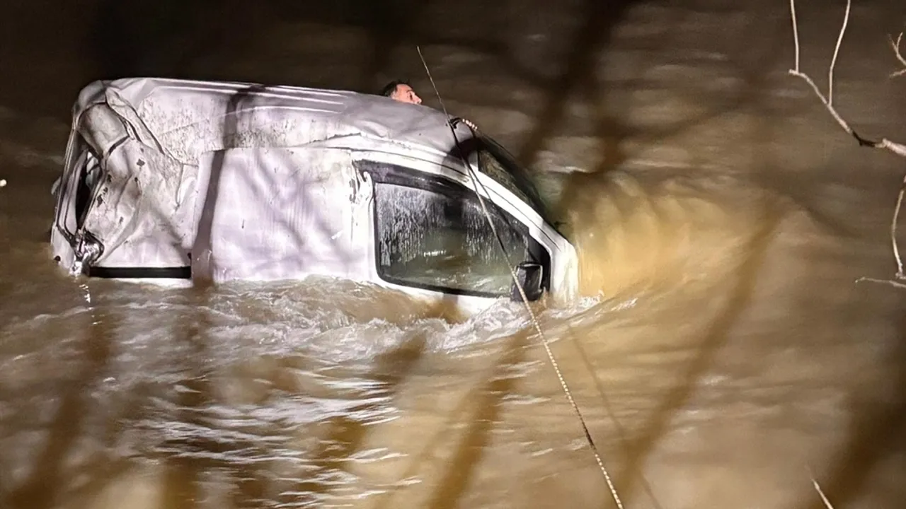 Kaza, dün saat 23.30 sıralarında Köprüköy ilçesine bağlı Yemlik Mahallesi'nde meydana geldi. Hafif ticari araç, eriyen kar sularıyla birlikte debisi yükselen Aras Nehri'ne uçtu. Kazada sürücü, nehrin ortasında yarısına kadar suya gömülen araçta mahsur kaldı. Mahallelinin ihbarıyla bölgeye jandarma, AFAD, itfaiye ve UMKE ekipleri sevk edildi. Sürücüye dalgıçlar halat yardımıyla ulaşabildi. Debinin yüksekliği nedeniyle güçlükle çalışma yapan görevlilerden biri aracın üzerine çıktı. Dalgıcın üzerindeki can yeleğini çıkararak verdiği sürücü, gerilen halatla kıyıya çekildi. Ambulansla hastaneye kaldırılan sürücünün sağlık durumunun iyi olduğu öğrenildi.