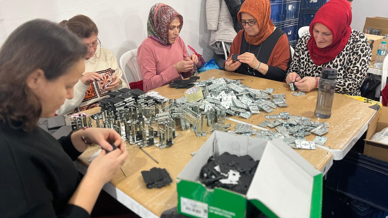 Çocuğunu okula gönderdikten sonra atölyeye gelen Berrin Yiğit (44), hem çocuğuyla ilgilenip hem de ek gelir sağladığını belirterek, "Benim de bir tanıdığım buraya gelmiş. Onların sayesinde duydum, o şekilde geldim. Gördüğünüz gibi önümüze gelen bu contaları yapmaya çalışıyoruz elimizden geldiği kadar. Sabahleyin çocukları okula gönderiyorum, eşimin kahvaltısını yaptırıyorum, onu işe gönderiyorum. Evi toparladıktan sonra buraya geliyorum. Burada vaktimi değerlendiriyorum. Bir nevi hem aktivitemizi yapıyoruz hem sosyalleşiyoruz. Bazen evime aldığım işle birlikte bütün gecemi ona harcıyorum. Programlanmış oluyorsunuz, gecenizi de ona göre ayarlıyorsunuz, gününüzü de ona göre program yapıyorsunuz" dedi.