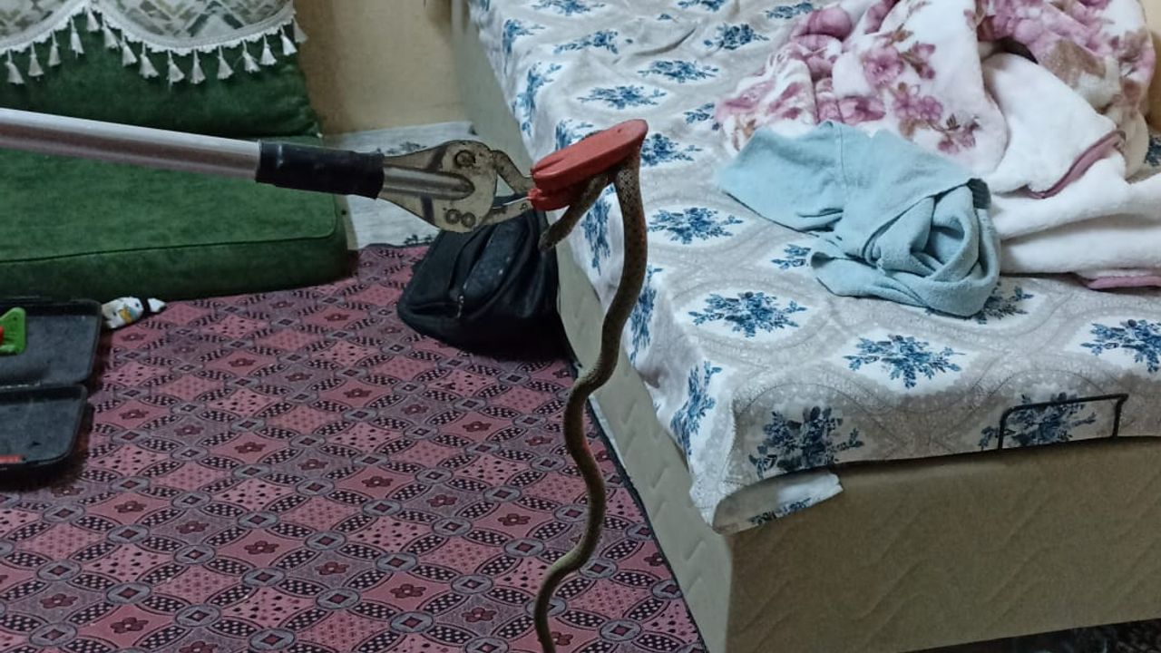 Akşam saatlerinde ilçeye bağlı Barbaros Mahallesi'nde iki katlı müstakil evin alt katında yılan gören ev sakinleri, 112 Acil Çağrı Merkezi'ni arayarak yardım istedi. Vatandaşın ihbarı üzerine bölgeye itfaiye ekibi sevk edildi. Evin içindeki yılanı özel aparat ile yakalayan itfaiye görevlileri, hayvanı gözetim altına alıp, daha sonra doğaya saldı.