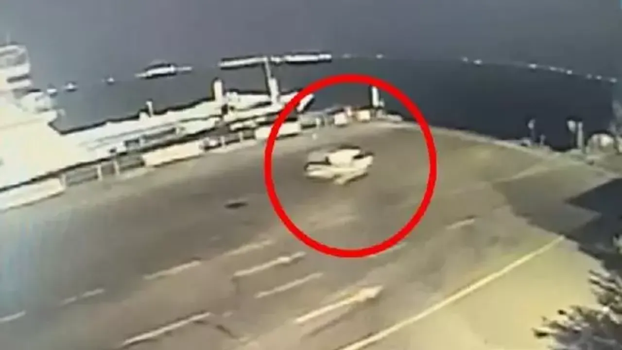 Kaza anı saniye saniye güvenlik kamerasına yansıdı. Görüntülerde hızla seyreden hafif ticari aracın denize uçtuğu görüldü. Ayrıca vatandaşların yardıma koştuğu anlar da kaydedildi.