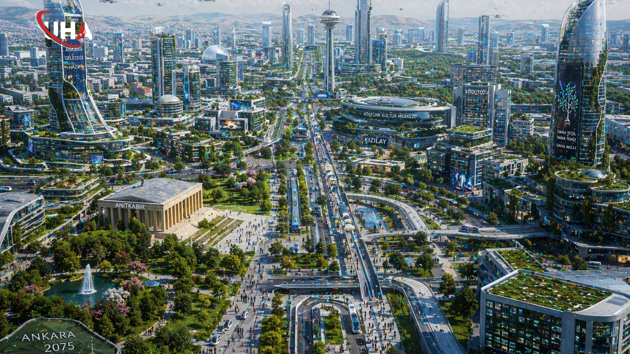 Üretilen görsellerde, Cumhuriyetin başkenti Ankara, 2076 yılında tamamen dönüşmüş bir teknoloji üssü olarak resmediliyor. Klasik mimarinin fütüristik çizgilerle harmanlandığı şehirde, geleneksel binaların yerini gökyüzüne uzanan dikey tarım kuleleri, akıllı cam panellerle kaplı gökdelenler ve enerji üreten estetik köprüler alıyor.