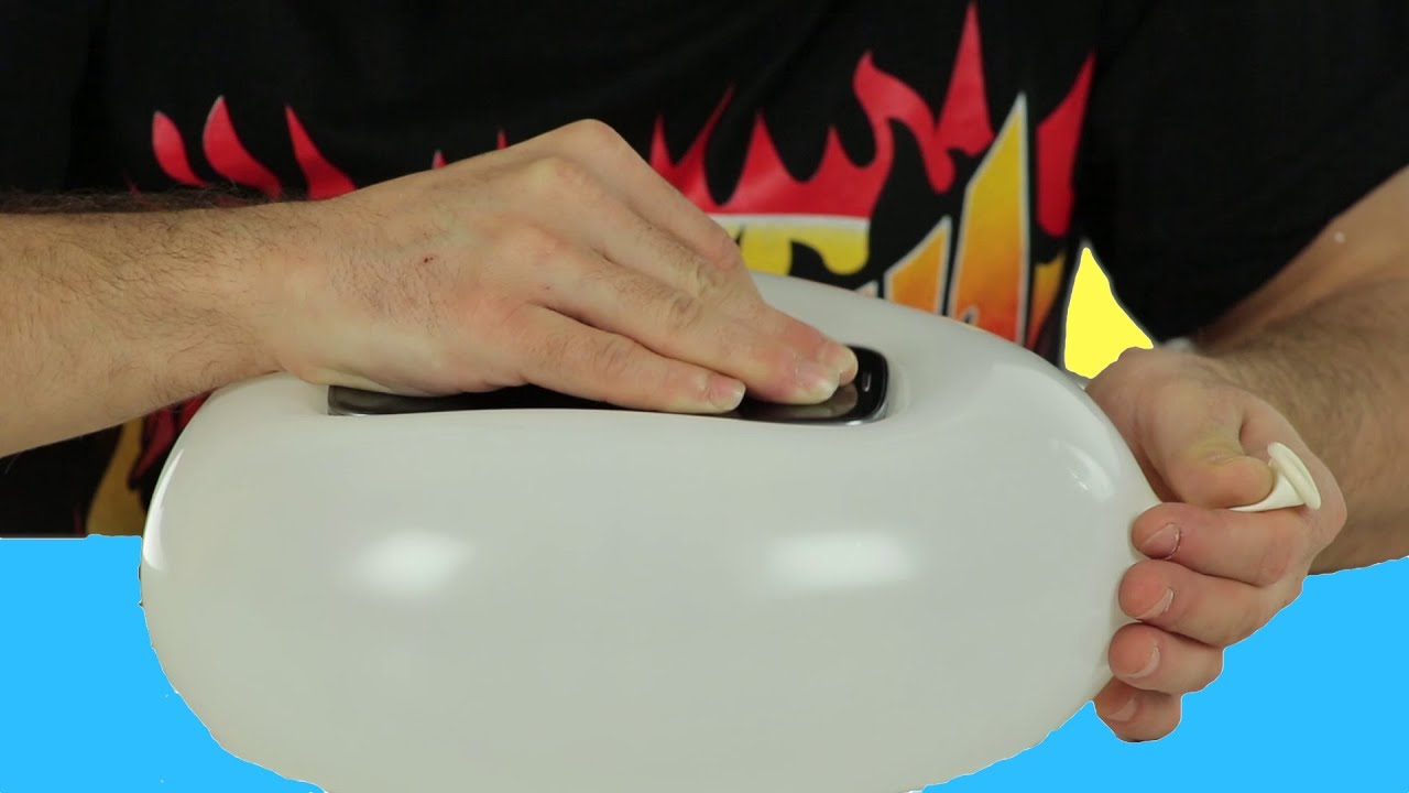 Telefonu Yerleştirin: Telefonunuzu dik bir şekilde, dikkatlice balonun üzerine yerleştirin. Şimdi en önemli adım geliyor: Şişirilmiş balonun ağzını sıkıca tutarken, telefonunuzu balonun üstüne bastırarak aşağı doğru itin.