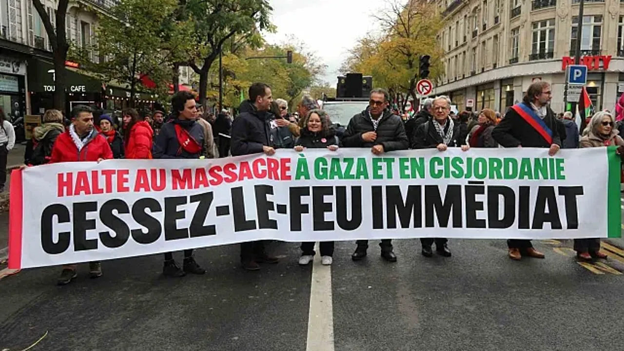 Fransa'nın başkenti Paris'te binlerce kişi Filistin'e destek için yürüdü. Republique Meydanı'nda başlayan ve işçi sendikaları ile sol partilerin desteklediği gösteride, "Acil ateşkes sağlansın", "Gazze'deki katliam durdurulsun", "İsrail'in bu yaptığı savaş değil soykırım", "Filistin özgür kalacak", "Gazze asla İsrail'in sömürgesi olmayacak" sloganları atan Filistin destekçileri, "Macron işbirlikçi", "İsrail'e birileri yeter demeli" gibi sloganlarla İsrail ve Fransa Cumhurbaşkanı Emmanuel Macron'a tepki gösterdi. Sık sık İsrail Başbakanı Binyamin Netanyahu için "katil" sloganı atan göstericiler, ABD Başkanı Joe Biden ile İsrail Başbakanı Netanyahu'nun eli kanlı pankartlarını taşıdı.