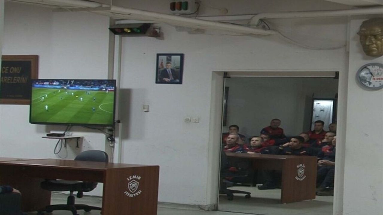 Ülkenin birçok noktasında olduğu gibi İzmir Büyükşehir Belediyesi İtfaiye Daire Başkanlığı Merkez Hizmet Binası'nda görevli itfaiye erleri de karşılaşmayı izledi. Karşılaşma devam ederken gelen yangın ihbarı sonrası ekipler, maçı yarıda bırakarak olay yerine intikal etti. Görüntülerde; itfaiye erlerinin maçı izlediği sırada ihbar gelmesi ve ardından kısa sürede harekete geçtikleri anlar yer aldı.