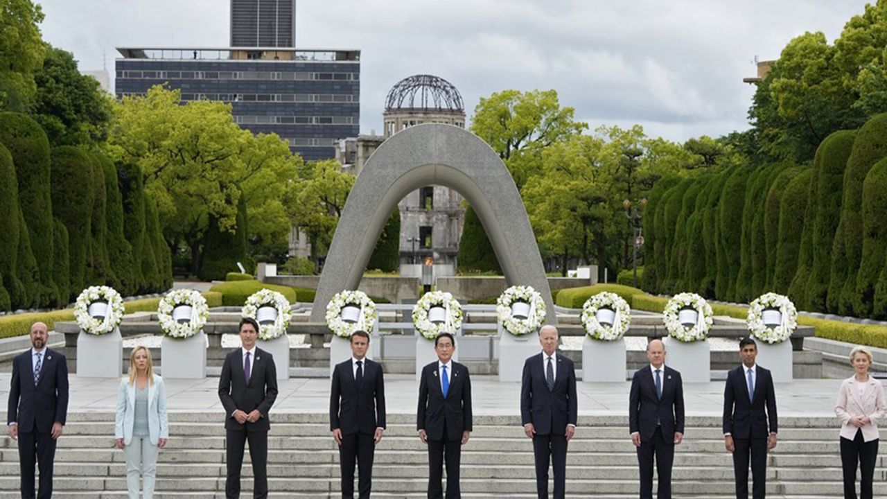 Japonya'nın dönem başkanlığında ülkenin Hiroşima kentinde düzenlenen 3 günlük G7 Liderler Zirvesi, bugün resmen başladı. ABD Başkanı Joe Biden, İngiltere Başbakanı Rishi Sunak, Kanada Başbakanı Justin Trudeau, İtalya Başbakanı Giorgia Meloni, Fransa Cumhurbaşkanı Emmanuel Macron ve Almanya Başbakanı Olaf Scholz'un yanı sıra Avrupa Birliği (AB) Konseyi Başkanı Charles Michel ve AB Komisyonu Başkanı Ursula von der Leyen'in katıldığı zirvenin ilk gününde Japonya Başbakanı Fumio Kishida, G7 liderleriyle birlikte 1945'te yaşanan atom bombası trajedisine dair eserlerin sergilendiği Hiroşima Barış Anıtı Müzesi'ni gezdi. Ziyaretin ardından liderler, atom bombası kurbanları için inşa edilen anıt mezara çelenk bıraktı.