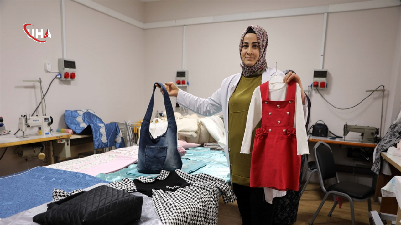 Oğuzeli Belediyesi'nin desteği ile Halk Eğitim Merkezi’nde açılan geri dönüşüm kursunda eğitim alan 20 kadın kursiyer eskimiş, kullanılmayan ve atık haldeki kumaşlardan yeni ürünler üretiyor. Kursiyerlerin atık durumda olan kumaş ve el işi göz nuru nakışlardan oluşturdukları kıyafet, çanta ve çeyizlik ürünlerin satışı ile de aile ekonomilerine destek sağlıyor. 2 yıl önce halk eğitim bünyesinde açılan kursa katılan kursiyerler, aldıkları sertifikalarla hem kendi işletmelerini açabiliyorlar hem de usta öğretici olarak görev alabiliyorlar. 20 kursiyer, ailelerinden yadigar kalan ve kullanılmayan kıyafetleri, torunları ve gelinleri için yeniden tasarlıyor. Kurs usta öğreticisi Ayşe Fatma Ergüleç, kursun kadın istihdamını desteklediğini ve verilen eğitimlerle hem geri dönüşüme katkı sağladıklarını söyledi.