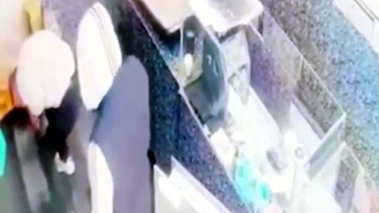 Güvenlik kamerasına yansıyan görüntülerde şüphelilerin kuyumcuyu darbedip biber gazı ile etkisiz hale getirdikten sonra altınları aldıkları soygun anı yer aldı.