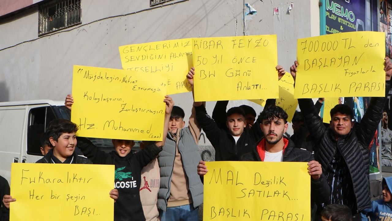 Evlenmek istediğini ancak başlık parası istendiği için evlenemediğini ifade eden Ahmet Yüksel (22), “Ben aslen Şanlıurfalıyım ama burada doğup büyüdüm. Burada benim gibi evlenmek isteyip de evlenemeyen nice gençler var. Gençlerin sesi olmak istiyorum. Şu an 600-700 bin TL para istiyorlar. Bazılarına göre bu rakam 1 milyonu geçiyor. Biz araba almıyoruz, ticaret yapmıyoruz. Evlilik Müslümanın işidir. Biz kötü yoldan, haram yoldan kaçınıyoruz. Bu insanlık değil. 50 yıl önceki Kibar Feyzo’ya mı dönelim” diye konuştu.