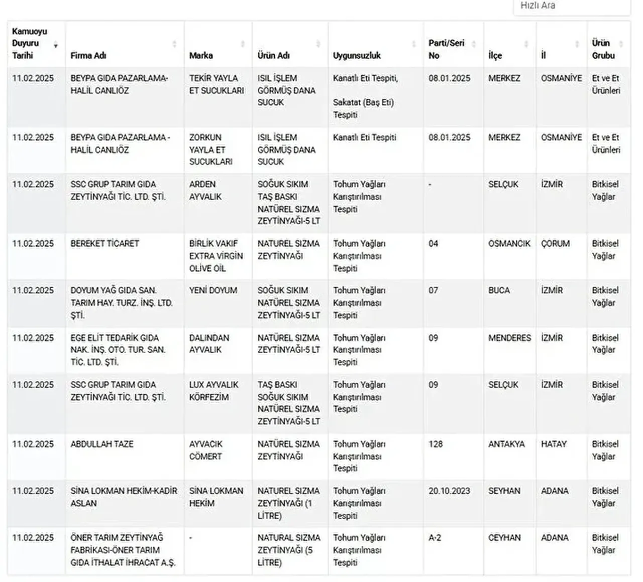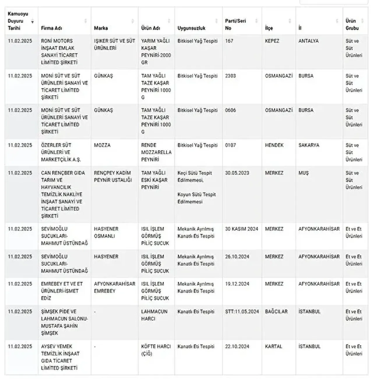 Herkesin ilgisini çeken sağlığı tehlikeye atan ve taklit-tağşiş yapılan ürünlere her gün yenileri eklenmeye devam ediyor. Tarım ve Orman Bakanlığı, vatandaşların sağlıklı gıdaya erişmesi için yaptığı denetimler sonrası uygunsuz olan ürünleri ifşa etmeye devam ediyor. Son yapılan güncellemeyle birlikte birçok ürün listeye dahil edildi ve üreticileri açıklandı.
