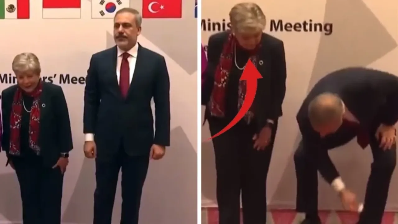 New York'ta yapılan MIKTA Dışışleri Bakanları Toplantısı'na katılan Hakan Fidan'ın bayrak hassasiyeti sosyal medyanın gündeminde. Fidan, toplantıda gazetecilere görüntü vermesi sonrasında Türk Bayrağı çıkarmasını alıp korumasına verdi.