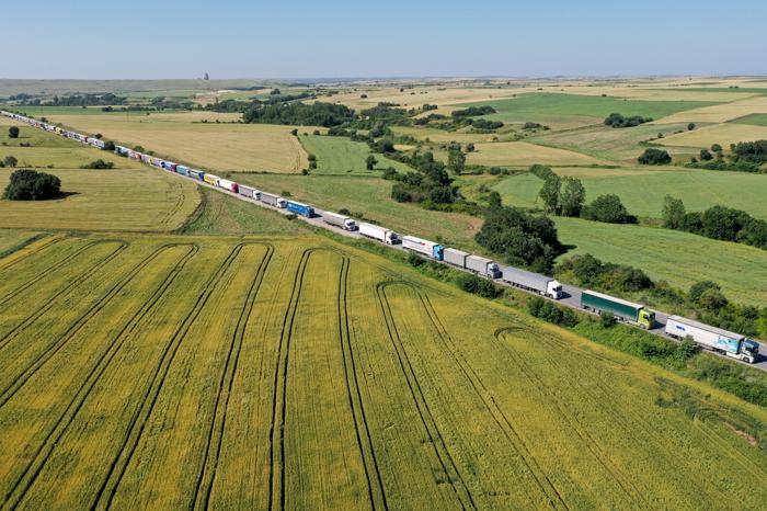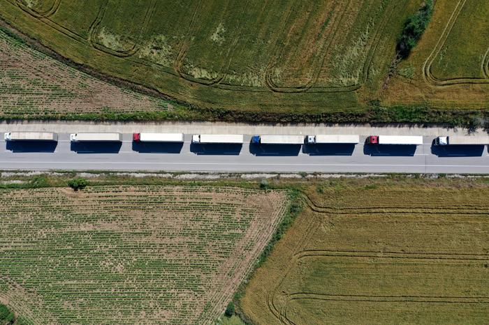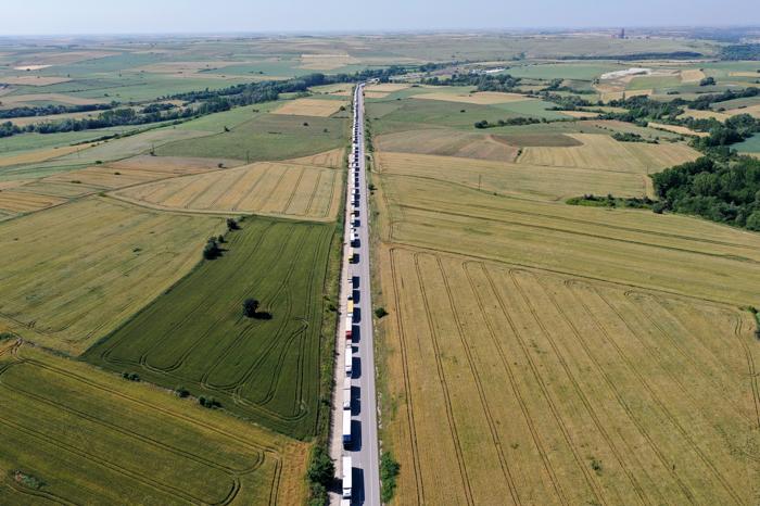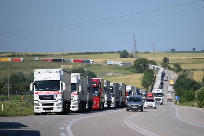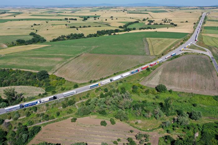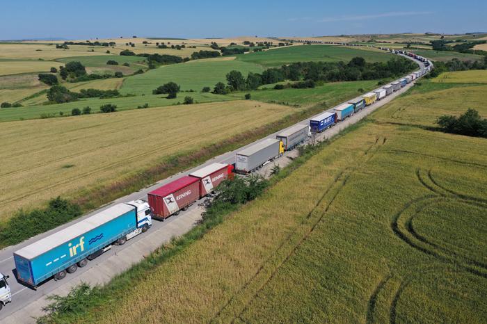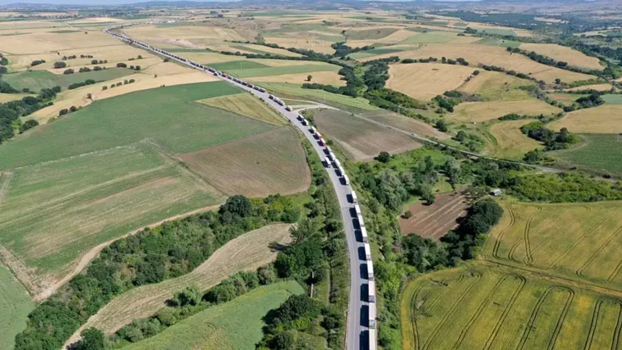 Hamzabeyli Sınır Kapısı'nda Avrupa'ya geçiş için yüzlerce tır sürücüsü araçlarında bekliyor.