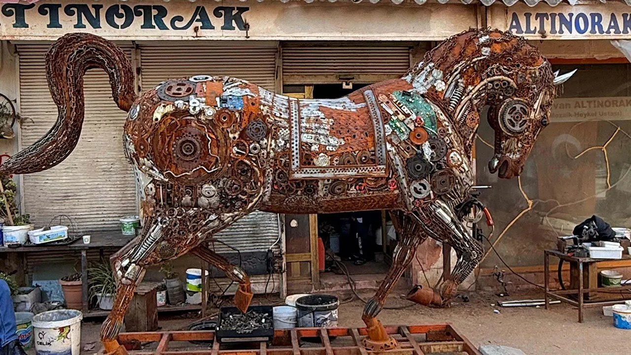 Cumhurbaşkanı Recep Tayyip Erdoğan'ın eşi Emine Erdoğan'ın himayesinde 2017 yılında başlatılan Sıfır Atık Projesi'ni de destekleyen Mervan Altınorak, bu kapsamda atık malzemelerden yaptığı eserlere bir yenisini daha ekledi. Mervan Altınorak, milattan önce 333 yılında Pers Kralı III. Darius'u yendiği İssos Savaşı'nın ardından o dönem Alexandreia adını vererek İskenderun ilçesini kuran Büyük İskender'in sahibi olduğu ve antik çağın en bilinen efsanevi savaş atı Bukefalos'un heykelini tasarladı. Tamamlanan Bukefalos heykeli, gücü, hareketi ve tarihsel sürekliliği simgeleyen formuyla, hem mitolojik hem de tarihsel bir anlatının taşıyıcısı olarak kurgulandı. Metal ve elektronik atıklardan üretilen eser, sanatçının uzun süredir sürdürdüğü sürdürülebilirlik, malzemenin sosyo-biyografisini oluşturuyor.