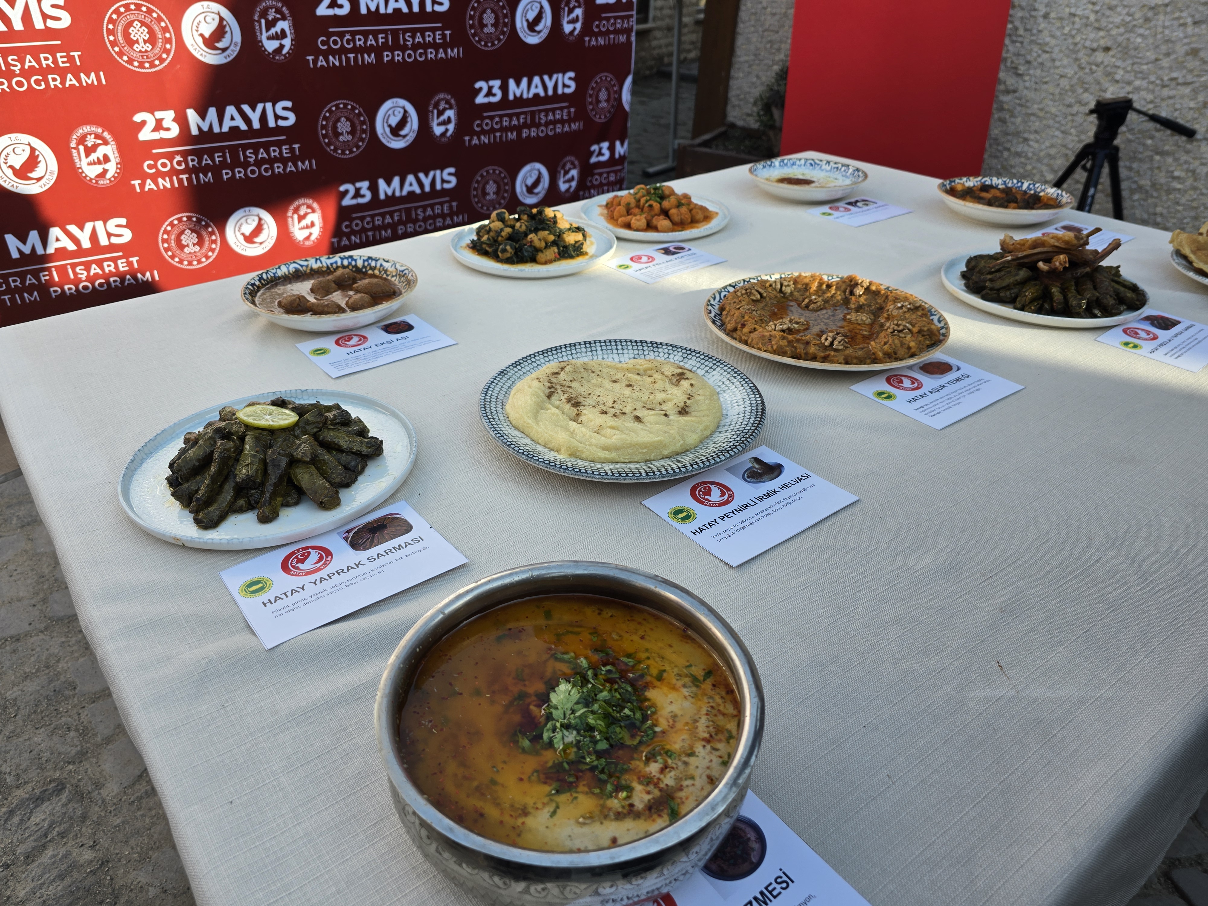 Kentte coğrafi işaretli tescilli ürün sayısı Hatay Valiliği’nin yaptığı çalışmalarla 10 yeni ürünün daha eklenmesi ile 50’ye yükseldi. Hatay’ın yöresel lezzetleri aşur yemeği, bakla ezmesi, peynirli irmik helvası, taş kadayıf, tuzlu yoğurt çorbası, yaprak sarması, ekşi aşı, bahtenis dolması, fellah köftesi ve pirzolalı yaprak sarma coğrafi işaret tescil belgesi aldı. Antakya Gastronomi Çarşısı’nda düzenlenen tanıtım etkinliğine Vali Mustafa Masatlı, Büyükşehir Belediye Başkanı Mehmet Öntürk ve protokol üyeleri katıldı.