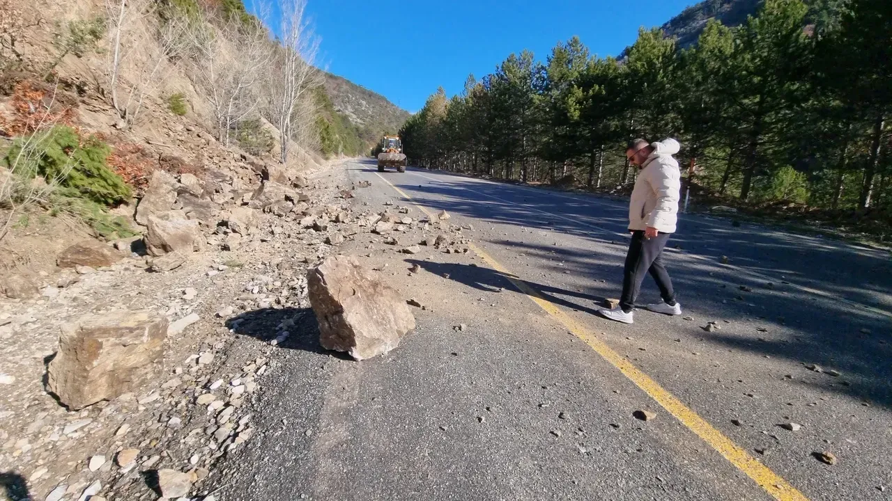 Yola düşen taşlar, Karayolları ekipleri tarafından temizlenirken, jandarma da bölgede güvenlik önlemi aldı ve muhtemel kazaların önüne geçti.